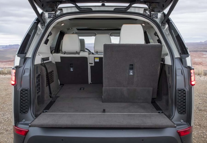 The new Discovery inevitably shares elements of its look with the smaller Discovery Sport and the company's premium Range Rover models, hauling it upmarket. It is handsome and, usefully, slipperier than ever - to the benefit of efficiency. The detailing around the lights and grille is bold, the shut lines tight, the surfacing neat. Overall it's successful, though from some angles the rear looks a touch bulbous, while the skewed rear number plate is the stuff of OCD-afflicted symmetry-lovers' nightmares. That jarring element hangs on a now single piece tailgate, while a fold-down flap within the boot creates a ledge so loved by Land Rover Discovery owners and previously delivered by a split rear hatch.