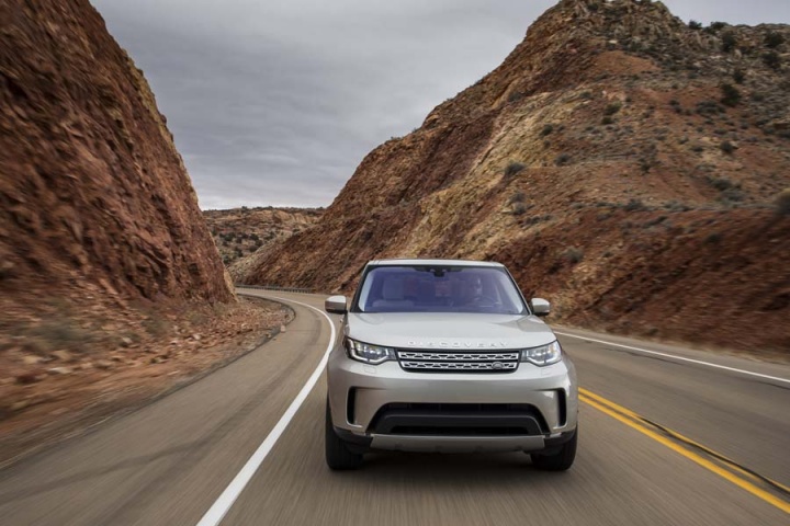 The four-cylinder turbodiesel engine also removes a fair bit of weight over the front axle, to the benefit of agility. Even so, the Discovery has never been about sporting prowess, and the new one follows that furrow. It is capable in the bends, and the steering accurate enough, though the slight lean reduces your enthusiasm long before you get anywhere near the limits of its grip. If that's your bag, buy a Range Rover Sport http://www.completecar.ie/car-reviews/article/Range_Rover/Sport/Sport/175/3253/2014-Range-Rover-Sport-review.html. No, the Discovery does exactly what you'd expect and hope it does, which is convey in comfort, even if the optional air suspension (steel coil springs on entry-level models) does sometimes get unsettled by sharper ridges on the road surface. That air suspension allows all sorts of raising and lowering for access (as well as off-road clearance) or high-speed stability, though we'd need to sample the conventionally coil sprung car before recommending shelling out the extra for it.