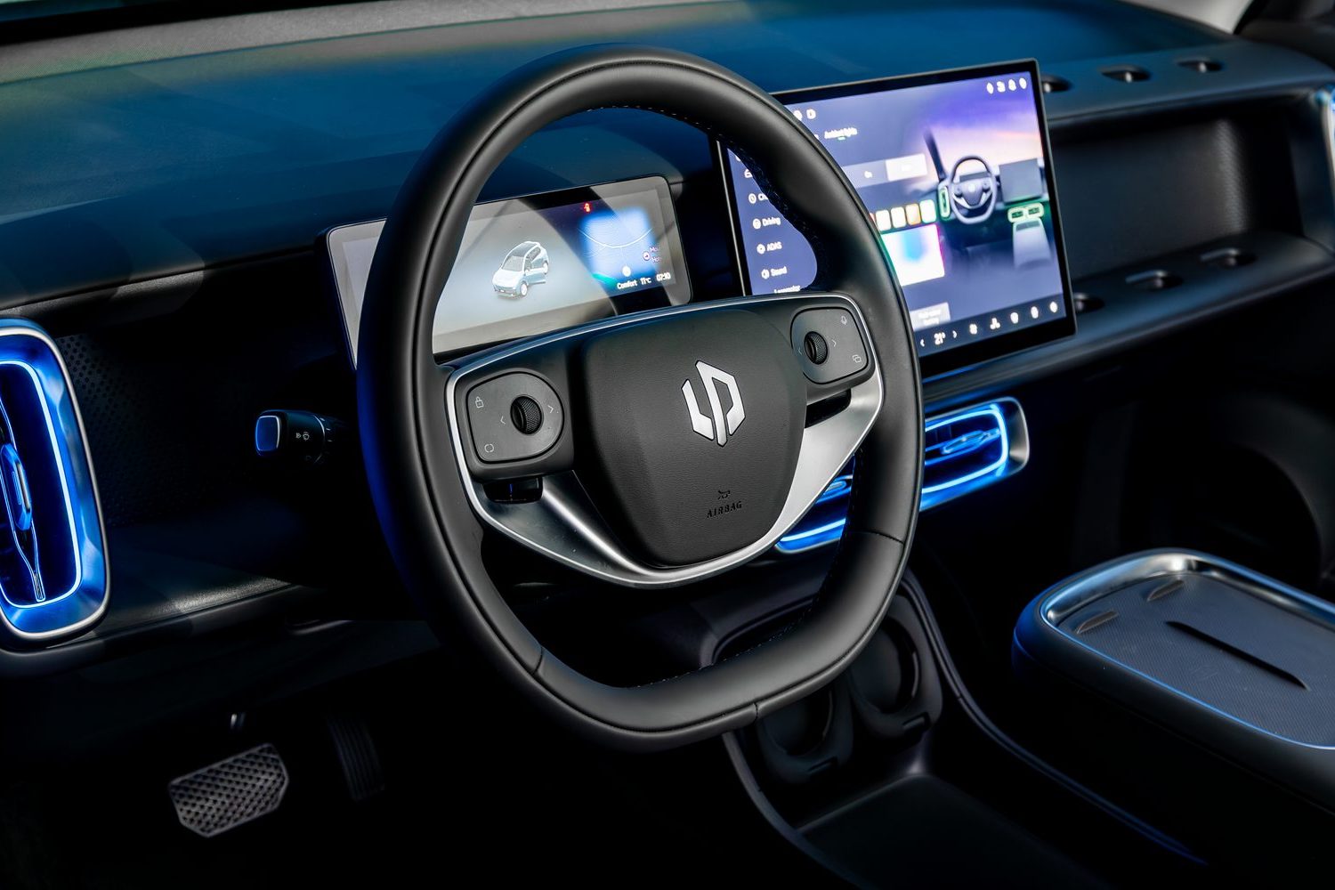 The multifunction controls on the steering wheel are simple and easy to reach with your thumbs and there are nicely textured rotary wheels on each side that are almost identical to what you get on a Tesla.