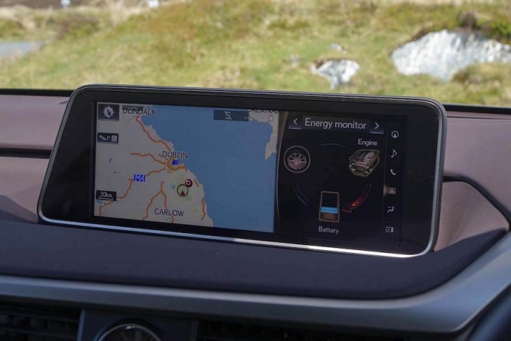Underneath that part-origami, part-spaceship exterior lies a roomy five-seat SUV that uses a hybrid powertrain consisting of a 3.5-litre petrol V6 engine and electric motor that is powered via a Ni-Mh battery pack. Some will say that this isn't as advanced as such plug-in hybrid systems offered by the likes of the Audi Q7 e-tron, BMW X5 xDrive40e or Volvo XC90 T8, but Lexus is keen to stress that, although it may be using older technology, it is better proven and more reliable. What that means in reality is that in the Lexus you can't drive anywhere near the same distance using only electric power as those plugin models, and nor will you get the same motor tax savings, with 127g/km of CO2 being emitted you will incur an annual tax bill of €270 for its Band B1 status. You also won't get the phenomenal official fuel economy figures of those others, which often stretch well into three-figure mpg, but the Lexus's 51.4mpg is, as it turns out, more on a par with what you will actually get from any of those other plug-in hybrid SUVs in the real world.