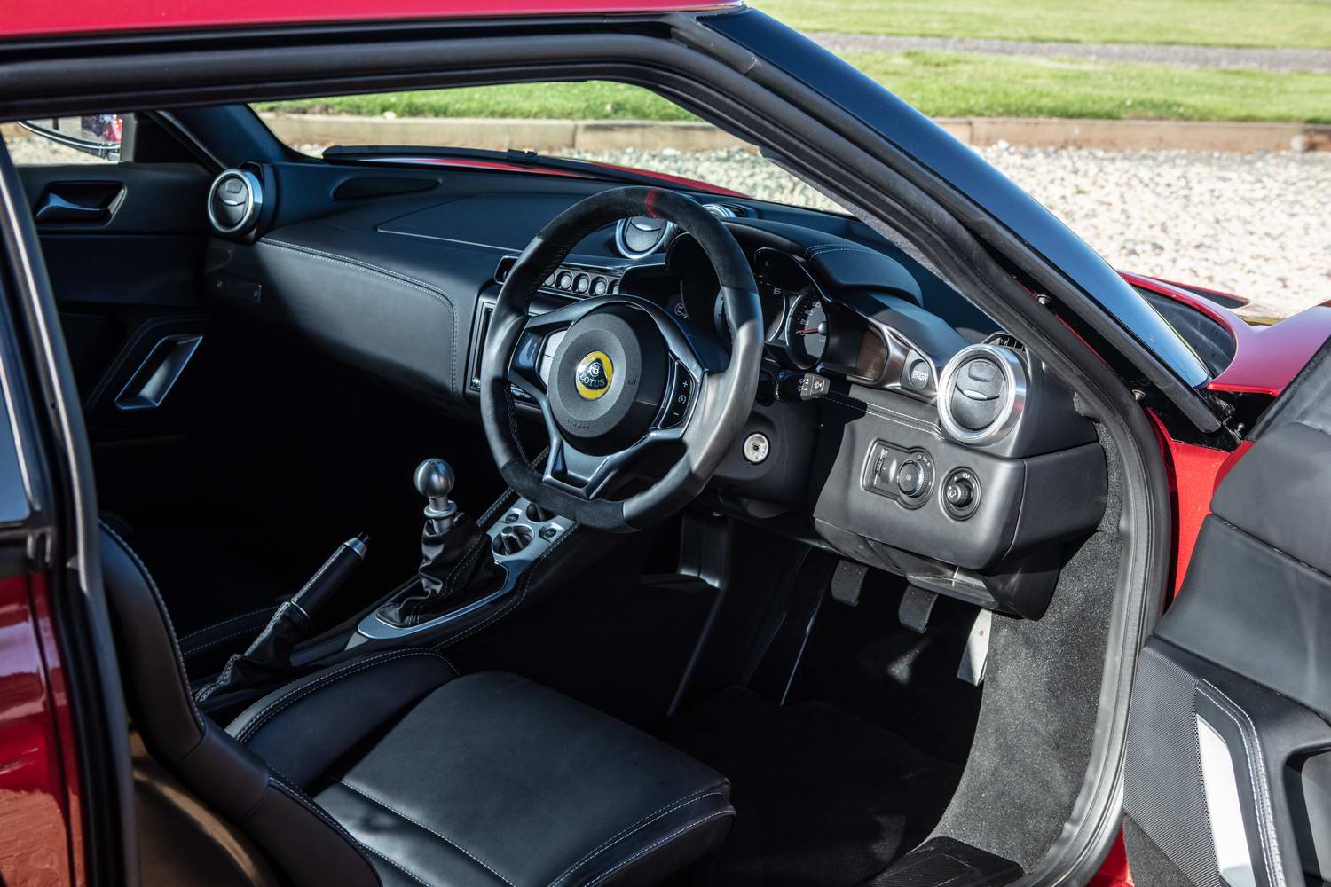 This is good news, although you still have to put up with column stalks and associated switchgear from a mid-2000s Ford, an instrument cluster that is vaguely kit-car-ish in appearance, some questionable surface materials in places and those aforementioned, laughably unusable rear 'seats' for a price tag that is broadly analogous to the starting ticket for a 992-series Porsche 911. Clearly, the Lotus' finishing is nowhere near such lofty Germanic standards, but conversely its cabin is not entirely unpleasant on the eye and it's super-comfortable to sit in, with good visibility out to the front and sides of the car.