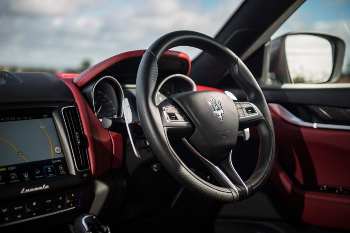 The V6 turbodiesel is built by Italian firm VM Motori and offers output that's respectable, with 275hp and 600Nm of torque, but it's tasked with hauling about a not insignificant 2,205kg before options. While it is brisk, it never feels sensationally quick, the 6.9 seconds it takes to reach 100km/h underlining that. There's a fairly obvious diesel clatter, too, minimising your desire to extend the engine, meaning the Levante is better sampled at a more sedate pace where its ample torque and plentiful ratios from the slick-shifting automatic make it a fine cruiser.