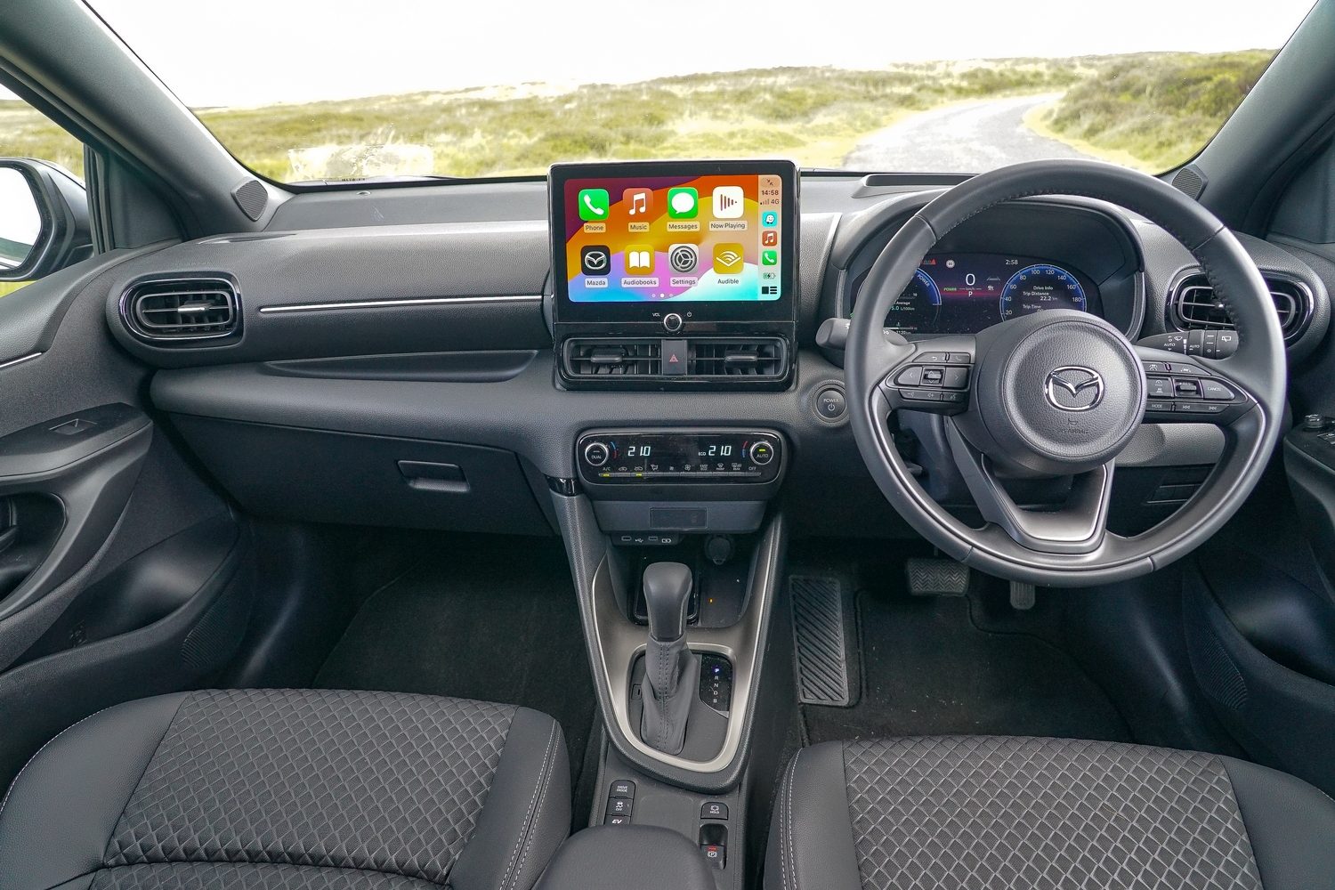 If you’re familiar with the Toyota Yaris, then the Mazda2 Hybrid will be a home from home. The layout is identical, and the only differences come with the software running on their touchscreens and the way that the two companies have specced their respective models.