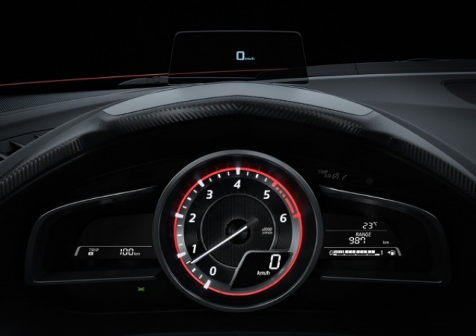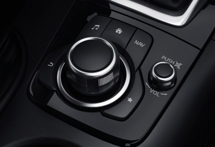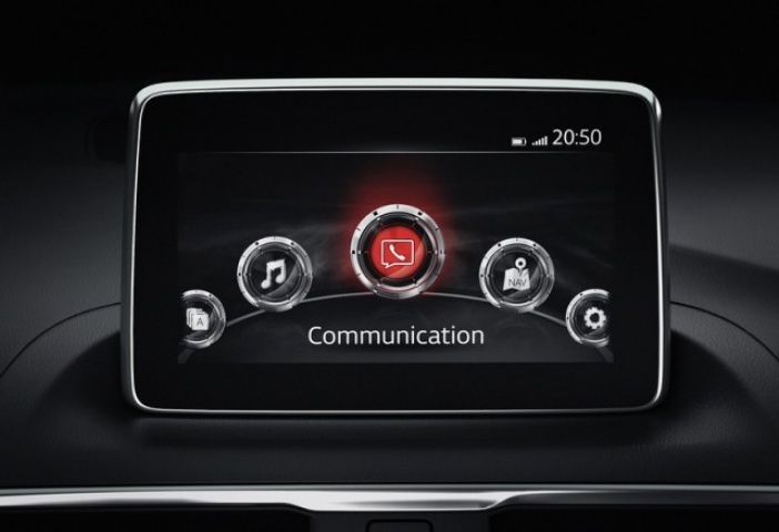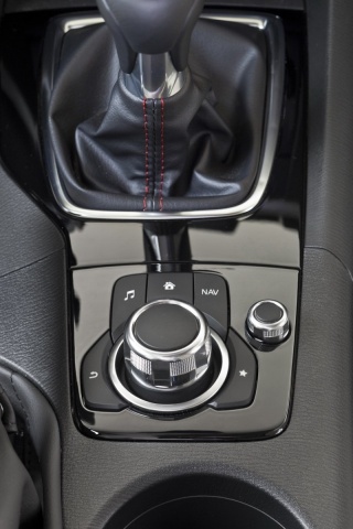 On higher specification cars Mazda has fitted a Head Up Display (HUD) that shows all relevant driver info without the driver having to take their eyes off the road, but on the entry car you get a conventional layout with ergonomically positioned dials. To the centre of the cabin there is a seven-inch display (the size Mazda has determined to be the ideal size) that is controlled via an iDrive like 'Commander' unit on the centre console.