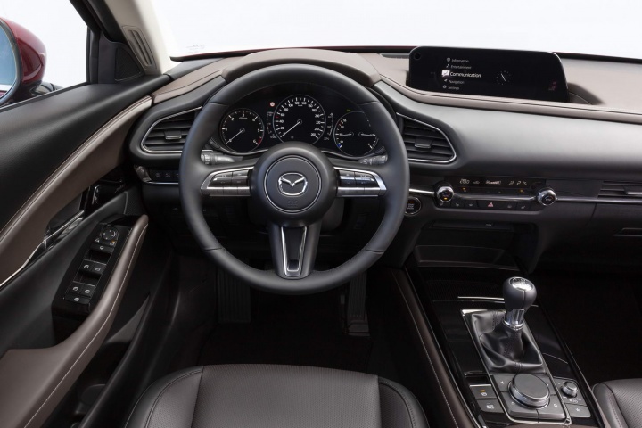 It's even better inside, though. Again, Mazda has taken what it's done with the 3 and ported it over to the CX-30 and the results are hugely impressive. The main dashboard is handsome and beautifully assembled - we genuinely are talking Lexus-busting levels of quality here - and it's very comfortable too. The main dials, arguably, look a little too plain, but the new shallow infotainment screen is excellent, and a huge step up on the older systems still used by the 6 and CX-5. Better yet, it's not a touchscreen, and uses a BMW-style rotary controller, which is far more intuitive to operate when you're on the move.