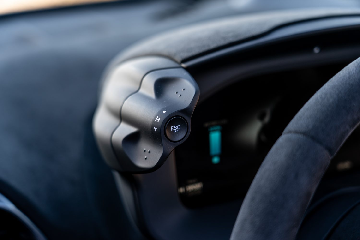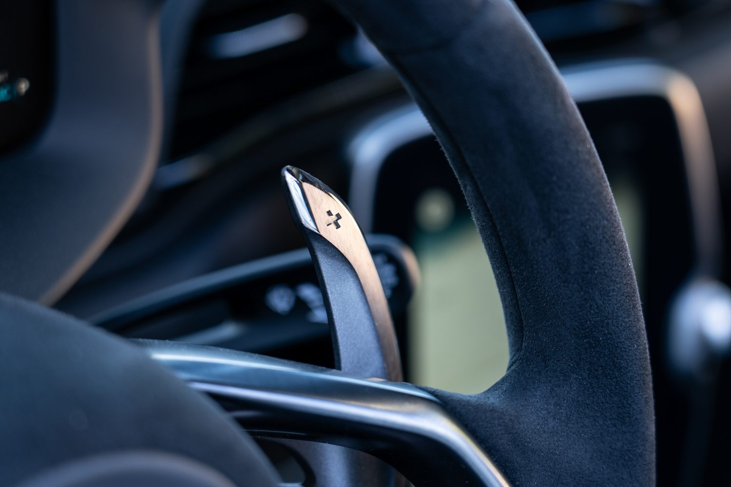 Some of the switchgear, for instance, is fantastic, like the quartet of scalloped metal column stalks and the weighty, satisfying-to-use paddle shifts. We also like the conceit of putting the Handling and Powertrain mode rocker switches up on the top of the instrument binnacle, so they are in reach of your fingertips while you're holding the button-free steering wheel - in itself something of a work of art in the modern motoring era for its minimalist visual glory.