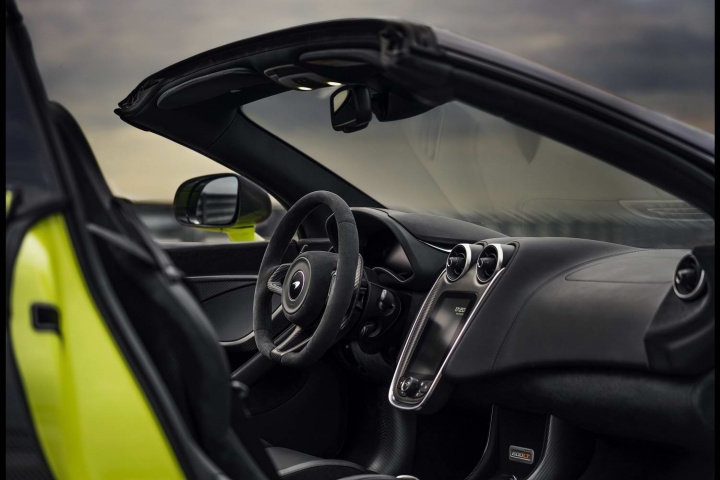Unique to the 600LT Spider, there's extra storage space behind the seats when the roof is up and, regardless of the roof position, the rear glass window can be lowered whenever you want to hear the engine and exhaust to the fullest.