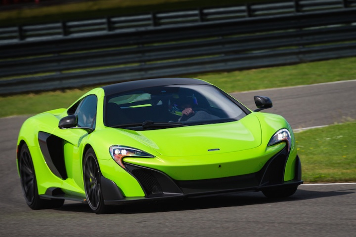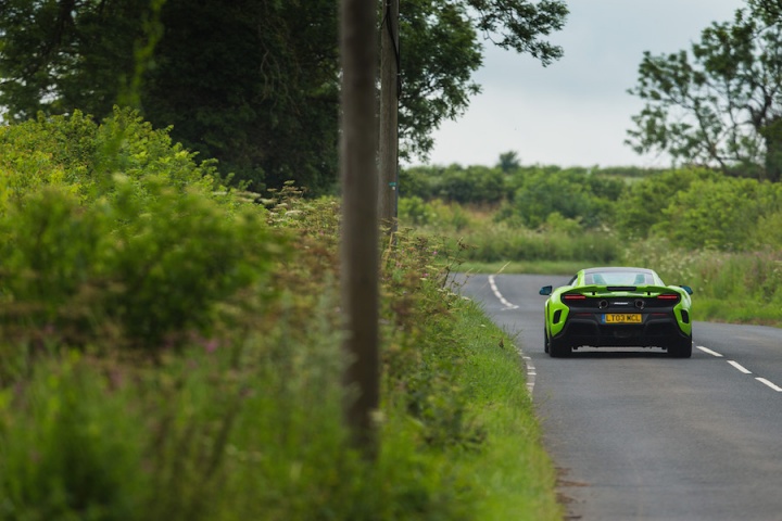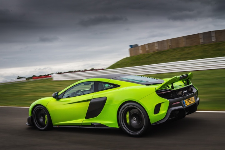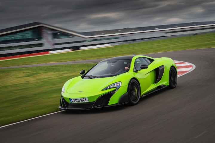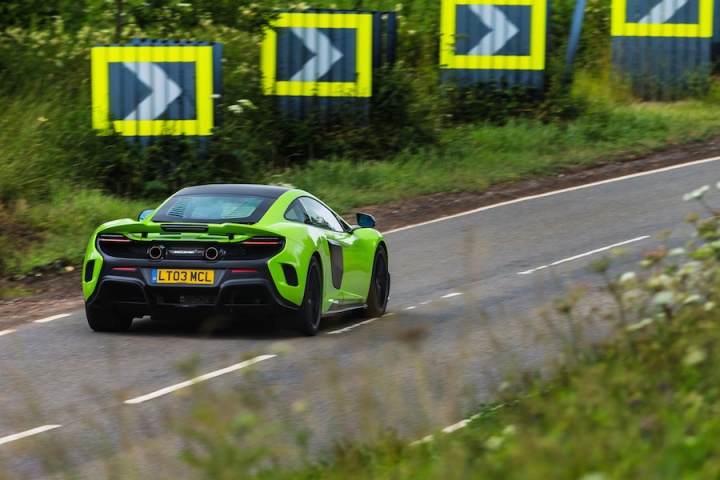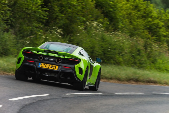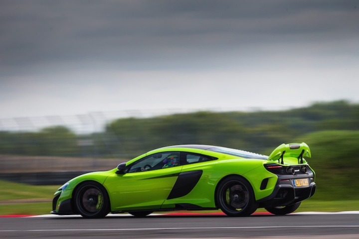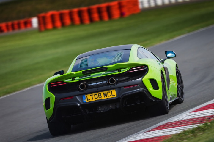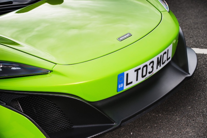 Sitting in the deeply bolstered sports seats clutching the steering wheel it's apparent that the changes to the steering ratio for faster response have worked. There is an immediacy to the wheel that's initially surprising. The lighter suspension borrows bits from the McLaren P1; with a 20mm increase in track and more focused geometry there's a greater feeling of connection, even on the smooth surface of Silverstone's three-kilometre long International Circuit. Spring rates are some 27 per cent higher at the front and 63 per cent at the rear for improved control. The ESC stability control function has now been separated from the different drive modes, allowing a step from partially on in ESC Dynamic mode, working in the background, to fully off. The 675LT features the latest generation of McLaren's ProActive Chassis Control, with unique settings to suit the more hardcore nature of the 675LT's make-up, while unique Pirelli P Zero Trofeo R tyres, with a stiffer internal structure, add to the increased focus, too.