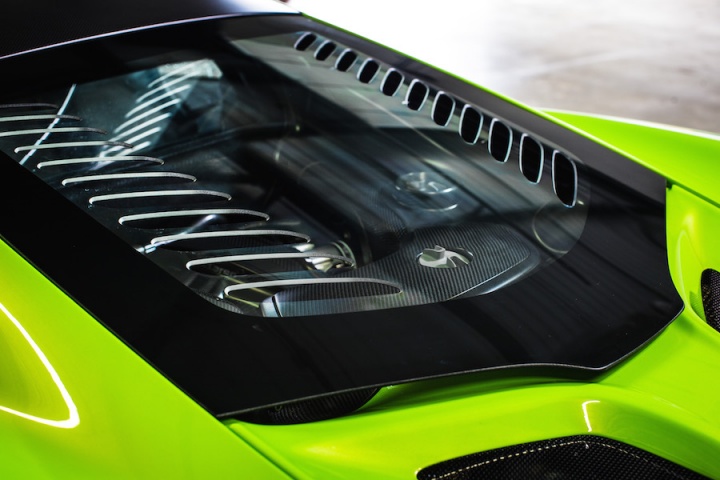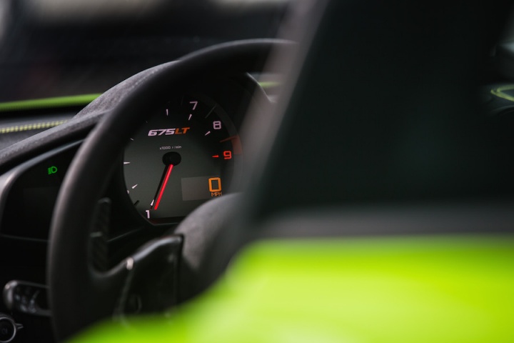 Just 25hp separates the 675LT from it 650S relation, for an overall total of 675hp. It is shifting 100kg less mass though, and that translates to even more eye-widening performance. Nobody is likely to get out of a 650S and say it needs more performance, but that's exactly what the 675LT delivers. The engine has been extensively reworked, with inertia removed thanks to lighter con rods. Some 50 per cent of the engine's components having being redesigned for use in the 675LT. The result is obvious as soon as you start it. The 675LT is meant to be a more visceral car, so the engine mounts are harder and there's less sound deadening inside the cabin, and the 3.8-litre twin-turbo V8 is immediately more intense, with some vibration and resonance apparent. It's neither intrusive, nor overbearing, but a welcome, rousing accompaniment and fitting for such a track-focused machine.