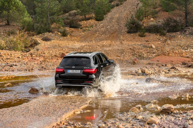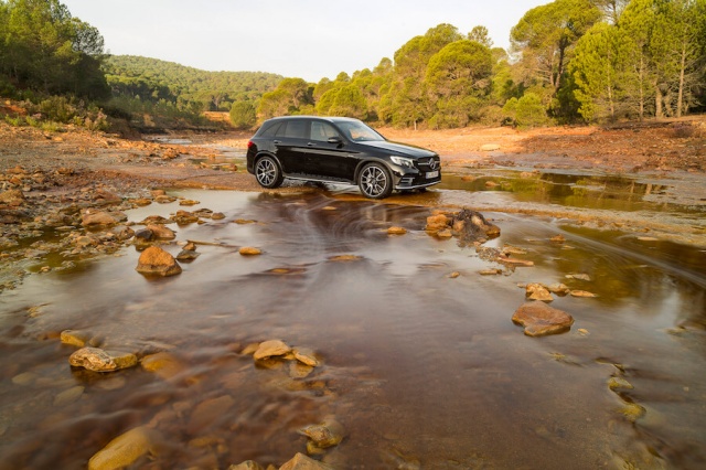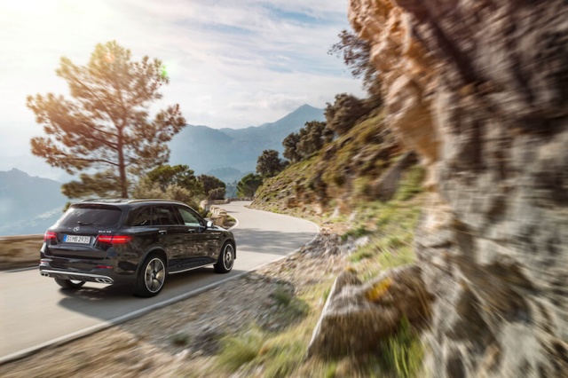 As power goes to all four wheels, in the dry it's all but impossible to break traction without severe provocation. Still, with 69 per cent of the engine output going to the rear axle by default, it never feels like it's going to plough on in understeer when you try too hard. 'Neutral' is the best way to describe the chassis. There is an ESP Sport mode for the stability control, which delays interference of the electronic nanny when you're pushing on through tight corners, but in reality there's so much grip available that few will need the assistance. It may be a different case in the wet of course, where we'd expect the GLC to be a hoot.