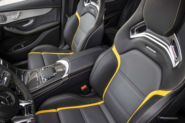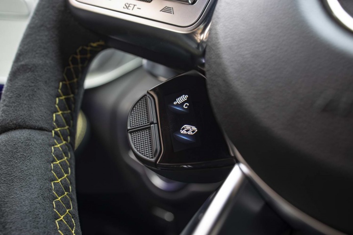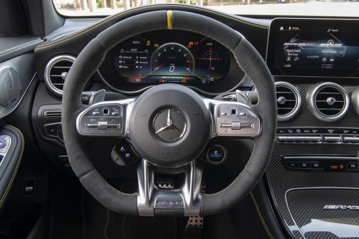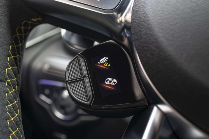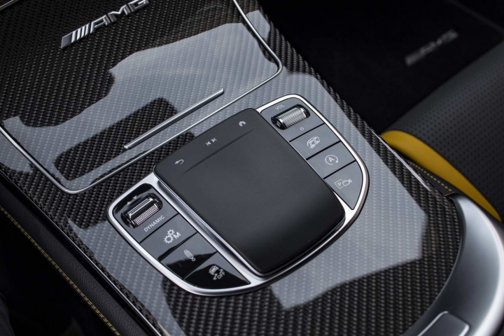 It's just too tempting though. Too tempting to use the delightfully tactile little rotary switch dangling from the spoke of the Alcantara-clad steering wheel and twist it until you get Race mode up. Then the suspension becomes all-but unyielding, but your back will forgive you because your ears will be so entertained. Race unleashes the full Van Halen backing track of malevolent growls, yells and overrun crackles. A 3.8-second 0-100km/h time doesn't even begin to tell you how fast this car actually feels, and if its weight does blunt performance ever so slightly compared to the C-Class saloon, Coupe, or estate with which it shares so much, then the tractive abilities of the 4Matic system compensate, propelling you out of corners like a shell from a howitzer, with an occasional little wiggle from the rear as that electronic differential comes out to play.