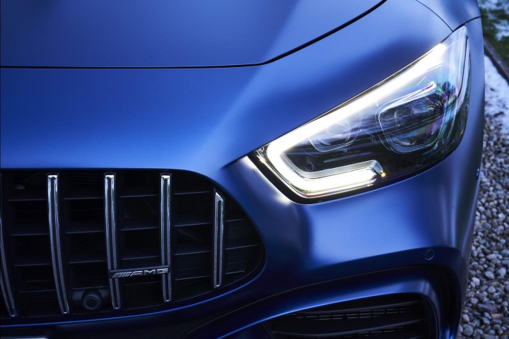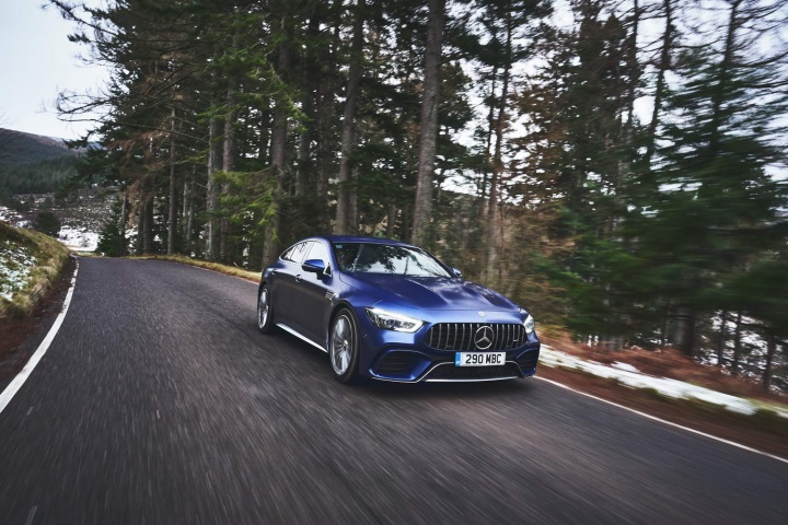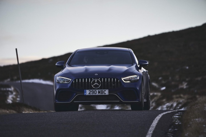 Nor, on almost every count, can the handling and ride characteristics. For such a big, hefty car with so much power on tap, the AMG GT four-door is ridiculously agile and rewarding. AMG seems to have the knack of getting modern electric power steering set-ups right and this car is no different, offering superb feedback and spot-on weighting in all of its various modes. The AMG GT is also ably abetted by the rear-wheel steering seen on the more potent pair of the two-door family, namely the GT C and the GT R, and so it'll pivot itself so admirably in fast corners and high-speed direction changes that it feels like something half its size and mass. Grip and traction are off the charts, meaning the GT's cross-country pace is simply colossal, but crucially it feels like there's some movement, some playfulness in the AMG's chassis that will satisfy the most demanding of drivers. As a luxurious car that has a sporting bent, it really does convince most ably.