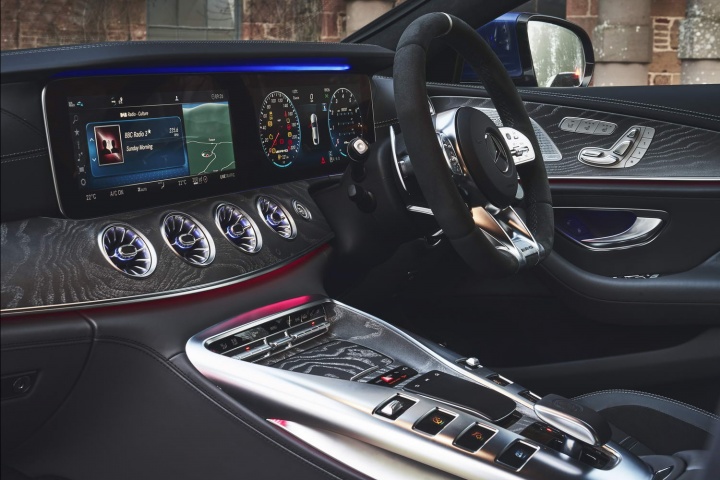 In essence, the AMG GT four-door leaves you in no doubt as to its ultra-prestige status, long before you've fired up its engine. It looks magnificent inside and out, and comes with a wealth of top-end toys to back up the ambience, although there is - as ever, with German machinery - a still fairly lengthy and costly options list. Just two models are confirmed for now: the AMG GT 63 and the AMG GT 63 S. Either uses a derivation of the tried and trusted biturbo 4.0-litre V8, first seen in the GT two-door, which drives all four wheels through a nine-speed AMG Speedshift transmission. The 63 delivers 585hp and 800Nm, plenty enough grunt for a 3.4-second 0-100km/h sprint and 311km/h flat out... this, despite the fact the Mercedes-AMG weighs 2.1 tonnes. Naturally, as a madcap AMG, then there's the 63 S for those who think the face-tearing acceleration of the 63 is just not good enough. That single extra letter in the car's badge denotes a 639hp/900Nm iteration of the V8, which are frankly insane numbers - and they trim the 0-100km/h time to 3.2 seconds, while increasing the top speed to 315km/h.