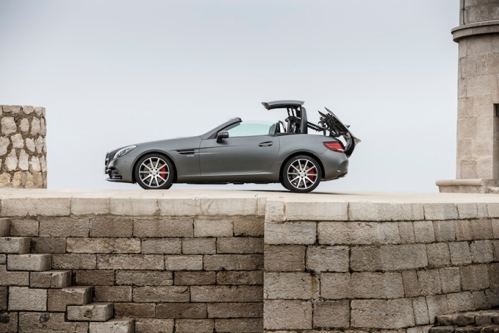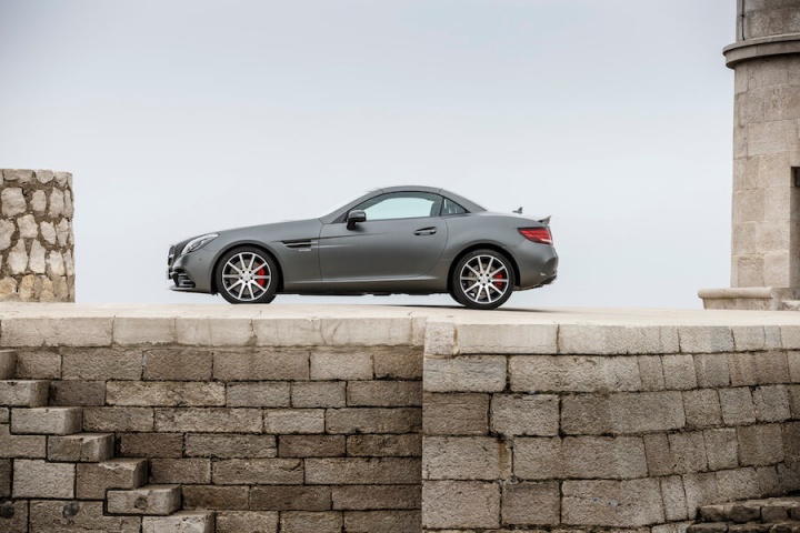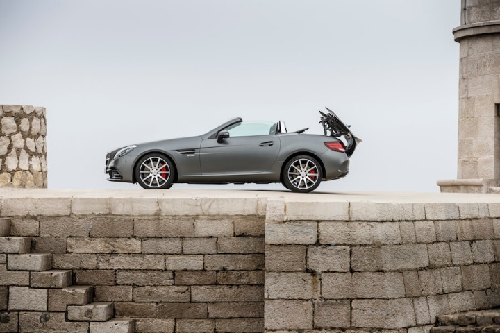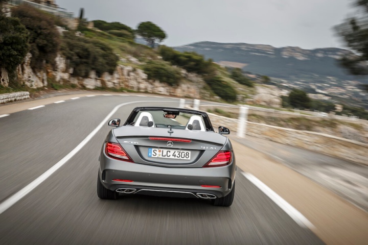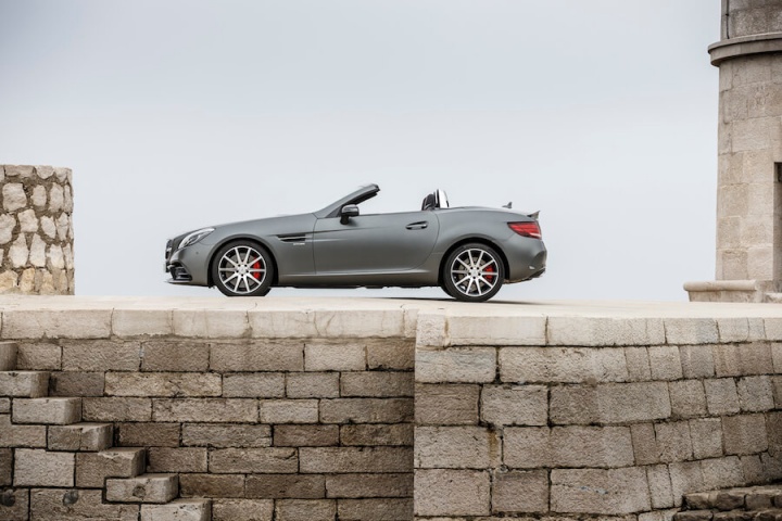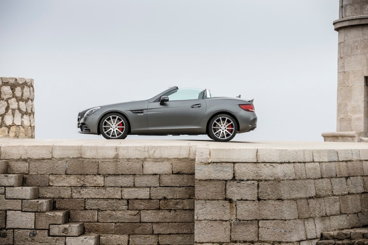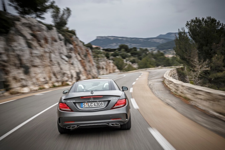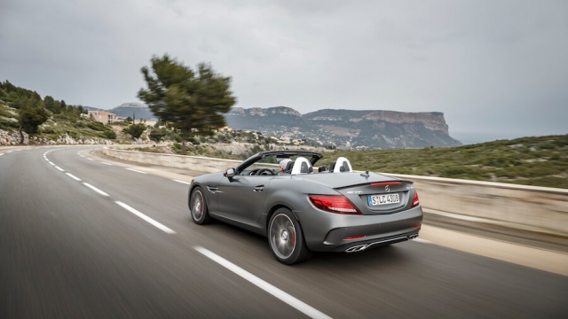 Like all the rapid SLKs that have gone before, the SLC remains a modern hot-rod. You don't exactly lean on every last ounce of its grip and ability in the corners, but instead use its prodigious power in a 'point-and-squirt' approach that still sees you covering ground at a grossly indecent rate. A Porsche 718 Boxster would be defter, a Nissan 370Z Roadster might be more willing to indulge in genial oversteer, a Lotus Exige would be much better damped... but none would be putting a mischievous grin on your chops like the hooligan SLC 43. The V8 might have gone, but the AMG devilment is alive and well in the roadster.
