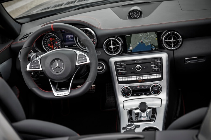 Same goes for the interior, where - apart from some AMG logos, sports seats and an IWC timepiece in the centre of the dash top - it's broadly the same as the regular SLC, which means beautifully screwed together and logically laid out. The AMG version comes with a comprehensive kit list, but, as ever, there's still room for options and we're talking about an €87,000 roadster here, so customers ordering need to go easy unless they intend passing the psychological barrier of 100 grand.