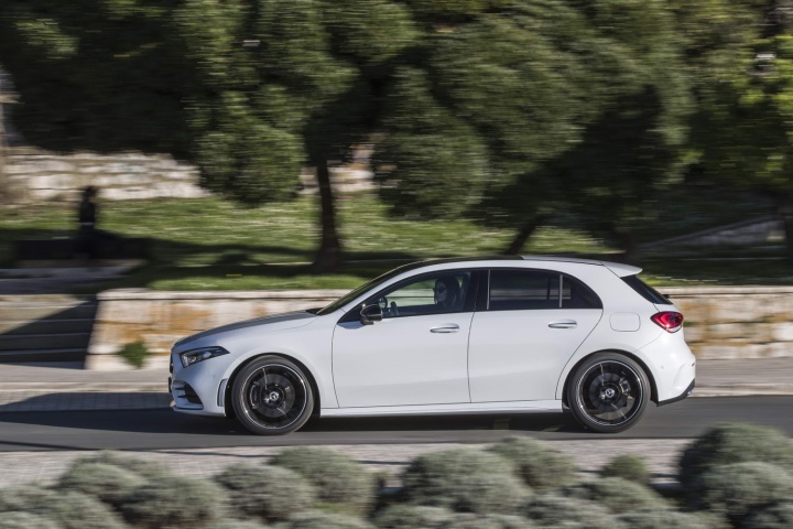Though it might have the same overall shape as the car it replaces, the new Mercedes A-Class cuts through the air far more cleanly. Aerodynamics play a more prominent role in this car, with active aero slots in the front opening and closing to help cool the engine, for starters. Cleaner lines and taut body surfaces go a long way to giving the car more appeal, too.
