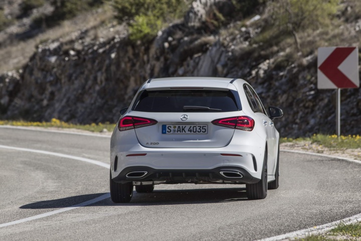 At launch, A-Class pricing starts at €31,600 in Ireland, for the A 180 d automatic. The A 200 petrol version tested here starts at €33,910. Trim levels are called Style, Progressive and AMG Line. Only the A 200 Style is in Band A4, while the A 200 Progressive (€36,495) and the A 200 AMG Line (€37,690) are in Band B1 for motor tax due to their larger wheels.
