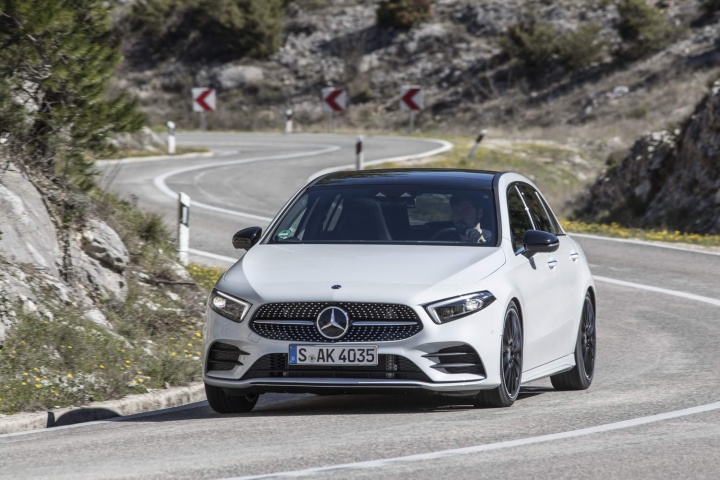 Even the base specification is considerably better equipped than the outgoing car, featuring rear USB ports, auto lights and wipers, a leather steering wheel, 16-inch alloys, keyless start, cruise control, a reversing camera, heated front seats, air conditioning and the MBUX interface with touchscreen and touchpad. The A-Class Progressive adds 17-inch rims, a significant exterior makeover, LED headlights and Artico (man-made leather) and fabric upholstery. The range-topping AMG Line cars gain 18-inch wheels, a sportier steering wheel, AMG body kit, Artico and Dinamica (suede-like) upholstery and plenty more AMG-influenced upgrades.