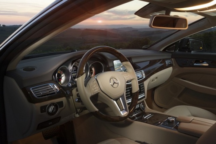 The option list is lengthy, and one of the most attractive things you can specify is the Cherry Wood rear boot floor. Inlayed with aluminium and with black rubber strips to grip the luggage it's a beautiful carry-over feature from the CLS Shooting Brake concept. Gorgeous is might be, but it won't be cheap.