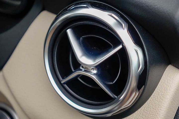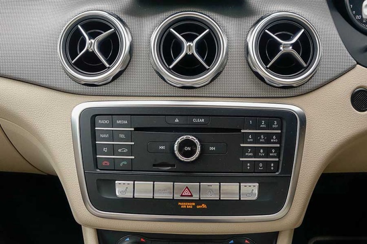 That means an even higher-up driving position; not that you'd pick up on it immediately. The rest of the cabin is relatively unchanged, save for the addition of new trim and material choices. Most of the switchgear feels of high quality, if not as impressive as that found in more expensive Mercedes models. Saying that, the three-spoke leather steering wheel and the five circular air vents are design and tactility highlights in equal measure. Meanwhile, the GLA Urban features bright upholstery that is part man-made leather ('Artico') and part 'Maringa' fabric. The high-set infotainment display is not a touchscreen, instead operated by a small rotary control between the front seats. It works fine once you find your way around it, and can be fitted with all the latest technology - for a price.