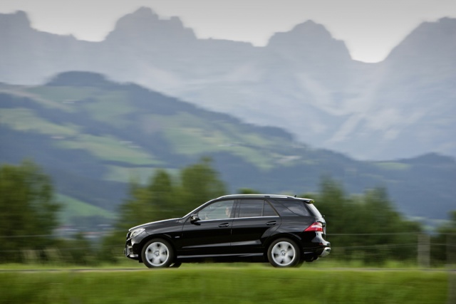 On-road ability is enhanced by the new Active Curve System, another option, which uses active anti-roll bars on the front and rear axles and compensates for the roll angle of the body through corners. This makes the M-Class corner flatter than usual.