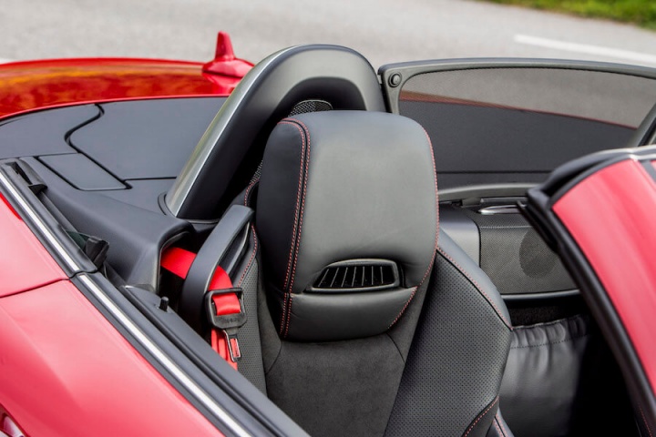 Standard SLC specification includes part-leather/Dinamica trim, cruise control, Active Brake Assist, climate control and the seven-inch media display system, among more, although there will be options such as Airscarf neck-level heating, Magic Sky Control (you can alter the opacity of the glass portion of the roof), adaptive damping and more, which will push the ticket up further.