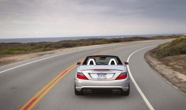 With 422hp and 540Nm available it's no surprise that the SLK makes short work of any straights you decide to point it down - covering the 0-100km/h sprint in 4.6 seconds. The seven-speed automatic gearbox can be a little slow in the upshift right at the redline, even in sport or manual modes, but at all other times it's a picture of efficiency and smooth changing that we've come to expect from Mercedes' self-shifters.