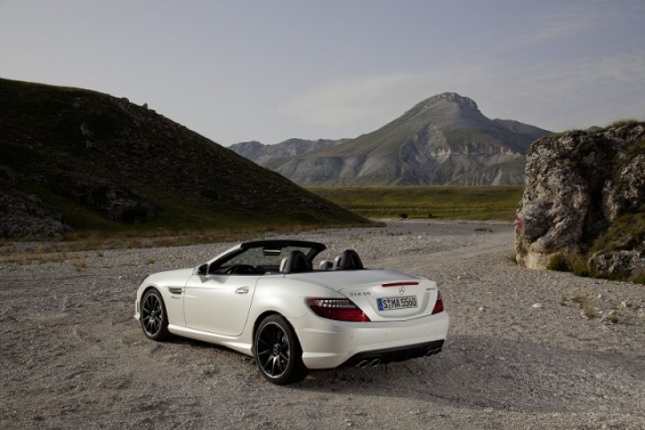 As a standalone special, the SLK 55 AMG is only available with one engine and gearbox combination. However, those craving a little more performance can opt for the Handling Package, which features stiffer suspension, a limited slip differential and composite front brake discs. There's also an Edition 1 available, which comes with an upgraded interior and choice of three exterior paint finishes including Satin White. One option box that should be ticked is the Airscarf neck heating system that blows warm air from the seat on occupant's necks to allow all-weather top down use of the SLK. The official price for the SLK 55 AMG in Ireland has been confirmed as €109,000.
