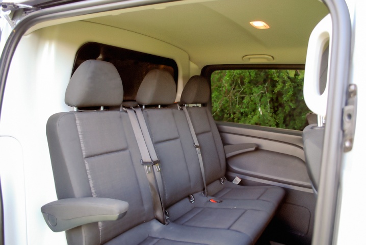 So, with the 1.6-litre panel van likely to be the biggest seller it makes perfect sense for us to test the 2.1-litre Mixto crew cab... No really it does - proposed new tax changes for crew-cab pick-ups could (and possibly should) see buyers flocking to crew-cab vans. With space for up to six occupants (five as standard with a three-seat front bench available from the options list), the Mixto is the ideal way to move a building crew or similar between jobs. Based on the long-wheelbase Vito, the Mixto retains a large load space, with a quoted volume of up to 4.1 cubic metres or 4,100 litres - a sizeable load whatever way you cut it. In fact, the nine-seat Tourer minibus manages to retain a 970-litre 'boot' even when transporting half a football team. Obviously all variants are dwarfed by the panel van that offers up to 6.9 cubic metres (6,900 litres) of cargo volume, an amount that Mercedes claims is class leading. Bizarrely though Merc does not offer a high-roof option for those who require even more space or regularly transport taller goods - for that you need the Sprinter.