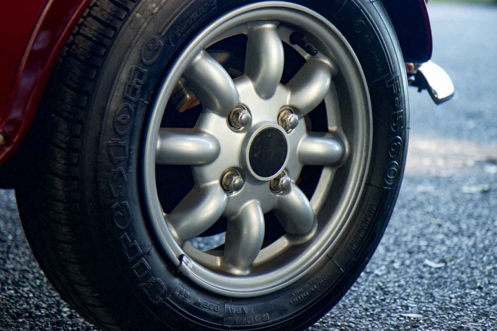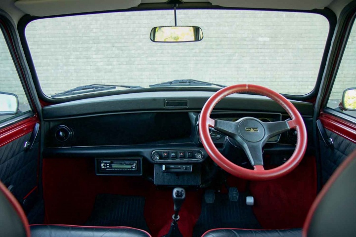 Under the bonnet is the ancient - but still game - A-Series engine, here in 998cc form with a mere 41hp and a hilariously tiny 68Nm of torque. Plenty of modern cars probably develop that from one cylinder, never mind a whole engine, but then the Mini weighs as much as the proverbial packet of fags; just 680kg at the kerb, a weight that even Lotus struggles to get its cars down to these days. There's a four-speed manual gearbox, an actual demister and rear stereo speakers perched in the back, and on the outside some special coachlines and the inevitable 'Minilite' alloy wheels.