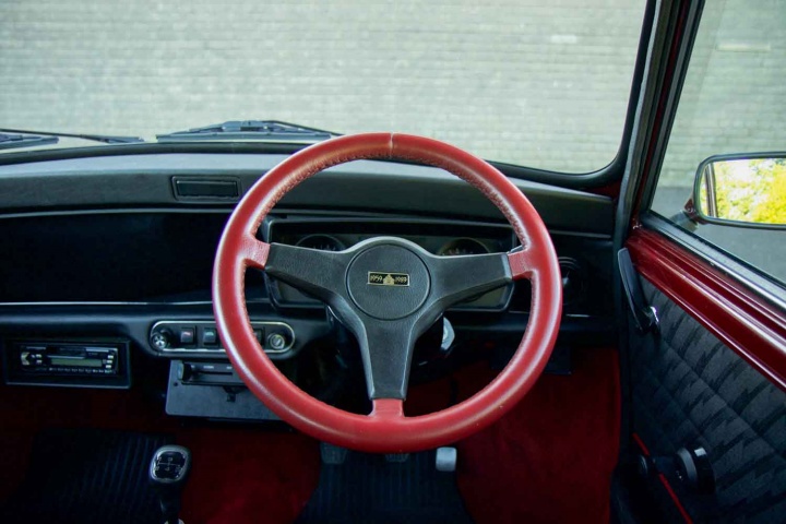 We're driving a little slice of history. Thirty years ago, in 1989, Mini celebrated its 30th birthday with the Mini 30, resplendent in its maroon paint (actually called Cherry Red in the original catalogue) and with special, vaguely-heraldic-looking 30th anniversary badges instead of the usual Austin Rover logos. Inside, there was unique trim - half-leather seats with red piping - and some extra equipment compared to the standard Mini Mayfair on which the 30th was based, namely a security-coded stereo, a leather-rimmed steering wheel with red contrast panels and a leather-bound copy of Rob Golding's book on the history of the car. By 1989, of course, the central speedo was long gone, replaced by small instruments in a plastic box behind the wheel, and the rubber mats of old had been replaced by wall-to-wall carpeting. This was among the last of the pre-BMW takeover Minis, so some of the quality bodges of the old British Leyland days were still evident, along with the lack of soundproofing - excised in the seventies as a cost-saving measure, but re-introduced by BMW in the nineties.
