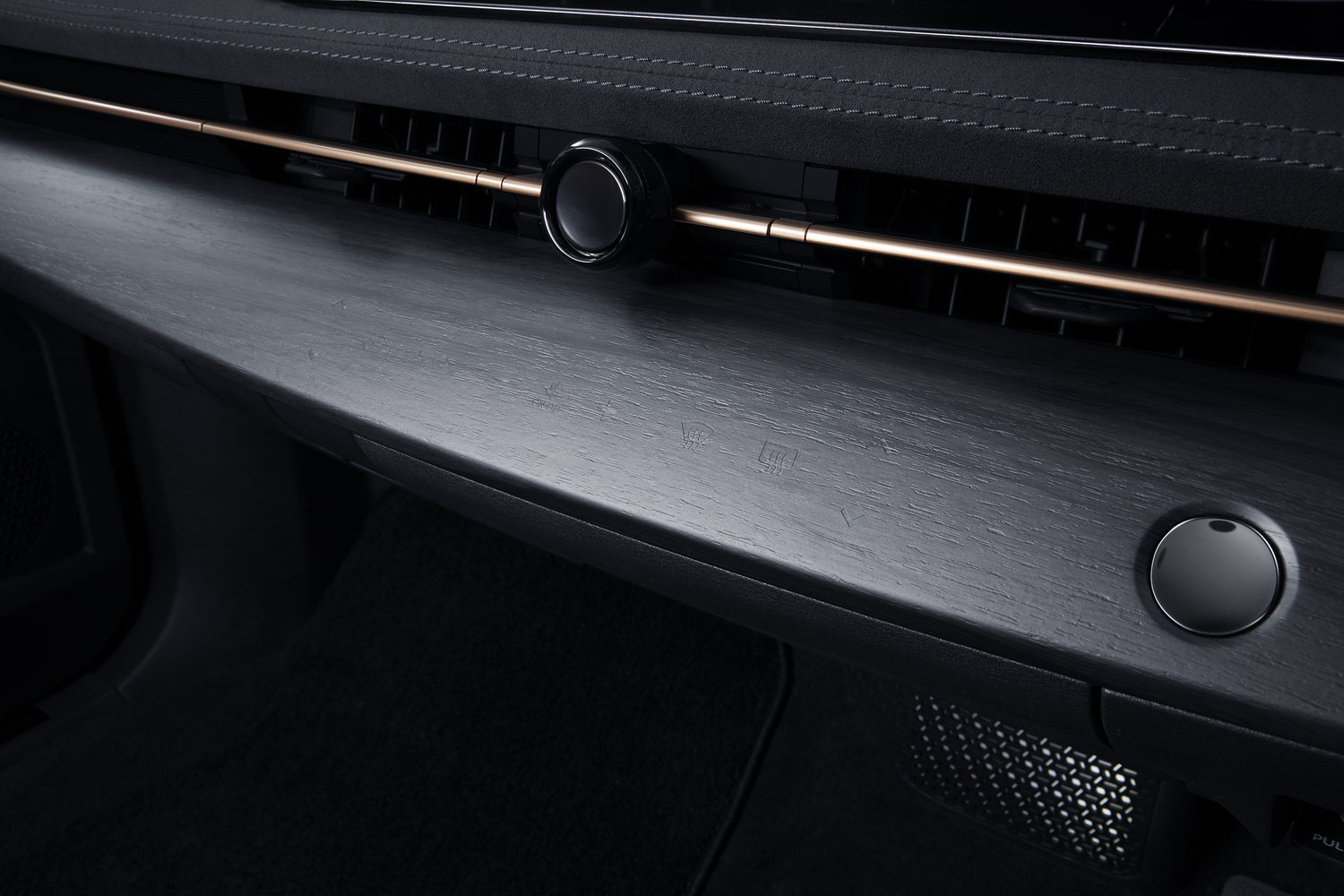 Below that, integrated into the solid trim material that runs the width of the car, are the seamless controls for the air conditioning system. They offer up haptic feedback on pressing them, which is a big improvement on touchscreen positioning. The same concept is employed on the centre console, where the drive modes, etc. are selected. Another pair of similar buttons opens and closes a gloriously overengineered storage box within the dashboard - otherwise hidden from view. That's next to a conventional glovebox.