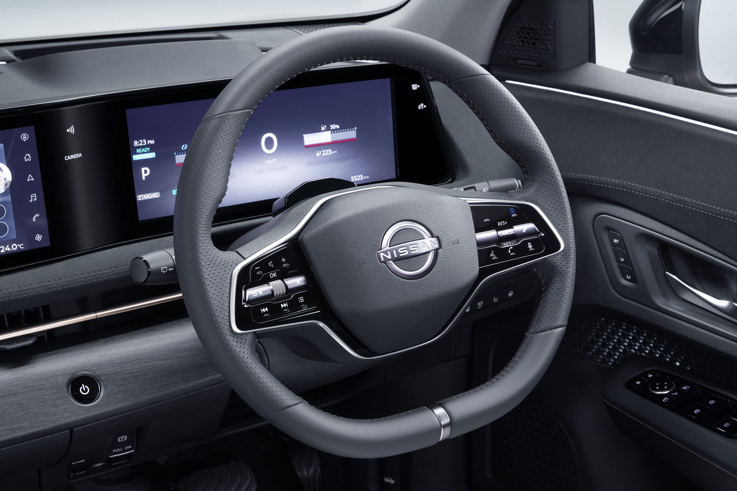 Highlights of the range-topping Ariya Evolve include synthetic suede seats, Intelligent Rear View Mirror, head-up display, ProPilot Park, ventilated (heat and cooled) front seats, heated rear seats, power memory mirrors, power memory driver and passenger eight-way seats, a Bose 10-speaker sound system and an openable panoramic sunroof.