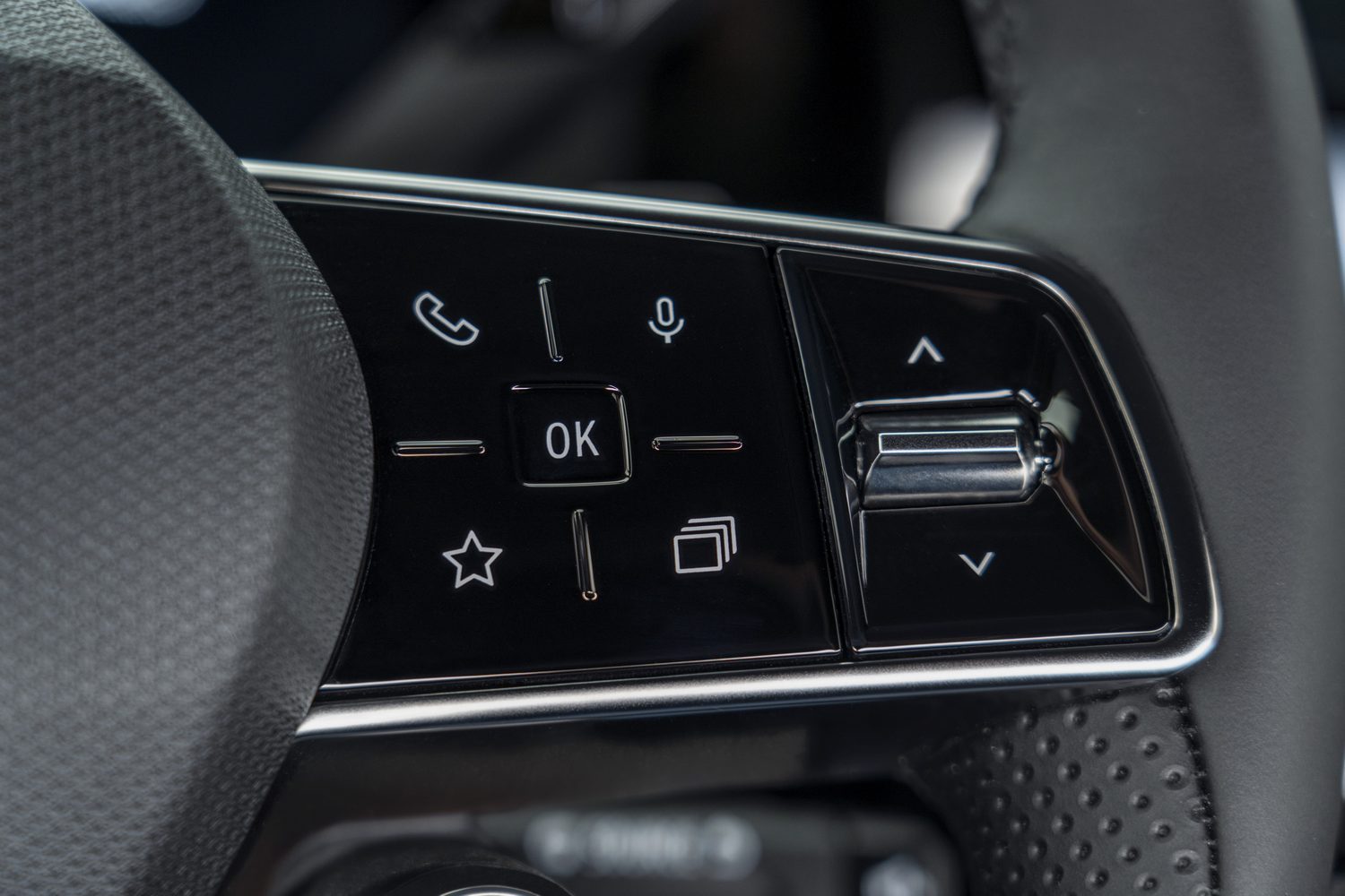 All of that is very useful and it works well, but it's the presence of physical switchgear for the air conditioning underneath that we're most happy to see. Shame then that the area behind the steering wheel (which also has plenty of tactile physical buttons as well) is so crowded. On the left side is the indicator stalk, which is fine, but on the right are the wiper stalk, the drive selector and a chunky extra set of controls for stereo volume etc.
