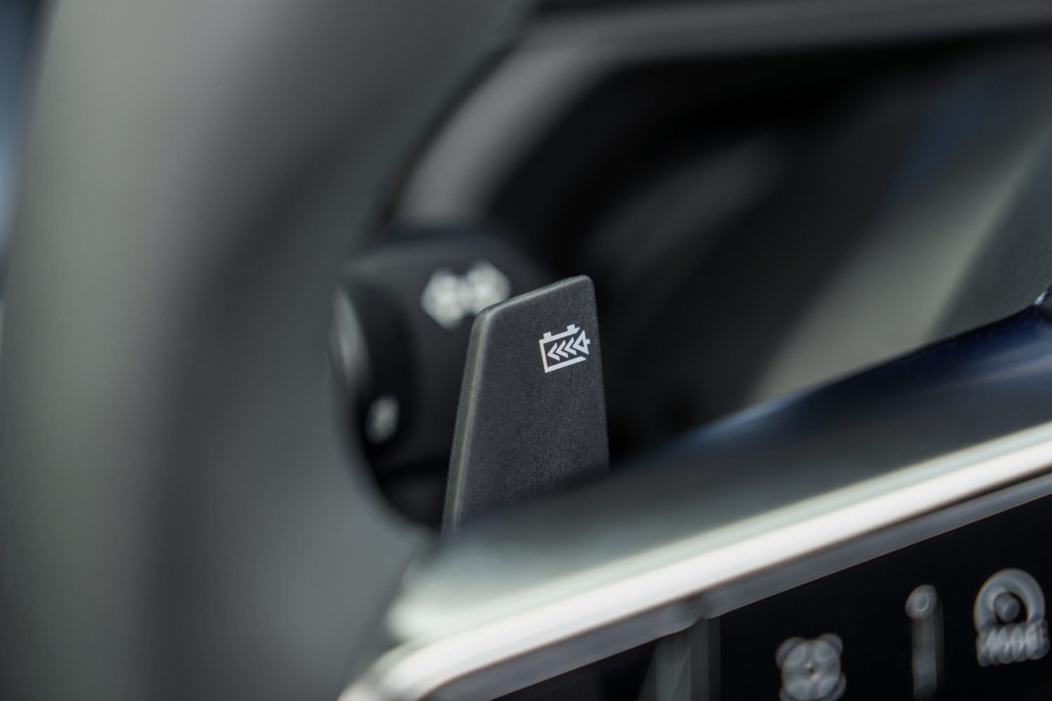 Oh, and I nearly forgot about the paddles on the back of the steering wheel to alter the level of the brake energy regeneration system. In truth, it doesn't take long to acclimatise to the layout and smartly, none of the individual stalks feels the same, so you couldn't accidentally put the car into reverse when all you want to do is turn up the volume on your favourite tune.