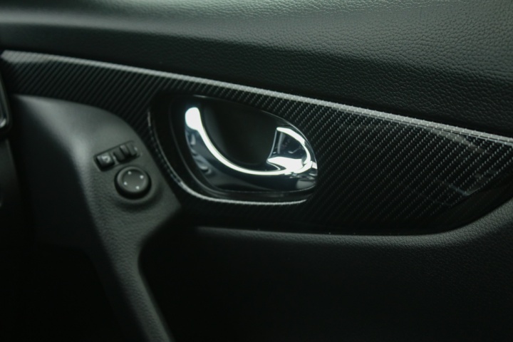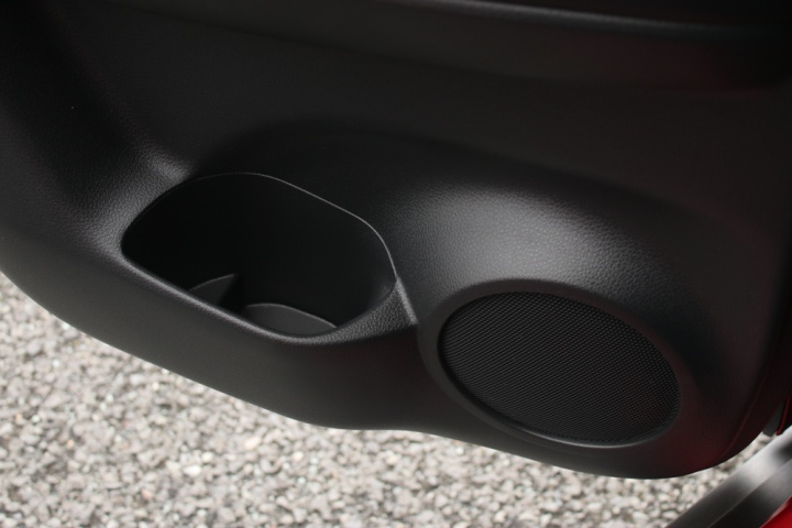 There are also some odd decisions made as to cabin trim and material. For instance - on the doors, around the door handle, there were some very nice (and expensive-looking) fillets of glossy carbon-fibre (or at least a good impression of the same). But on the main section of the dash, in front of the passenger seat, is a huge chunk of trim, upholstered in a cheap-looking (and feeling) leather, which just looks awful.