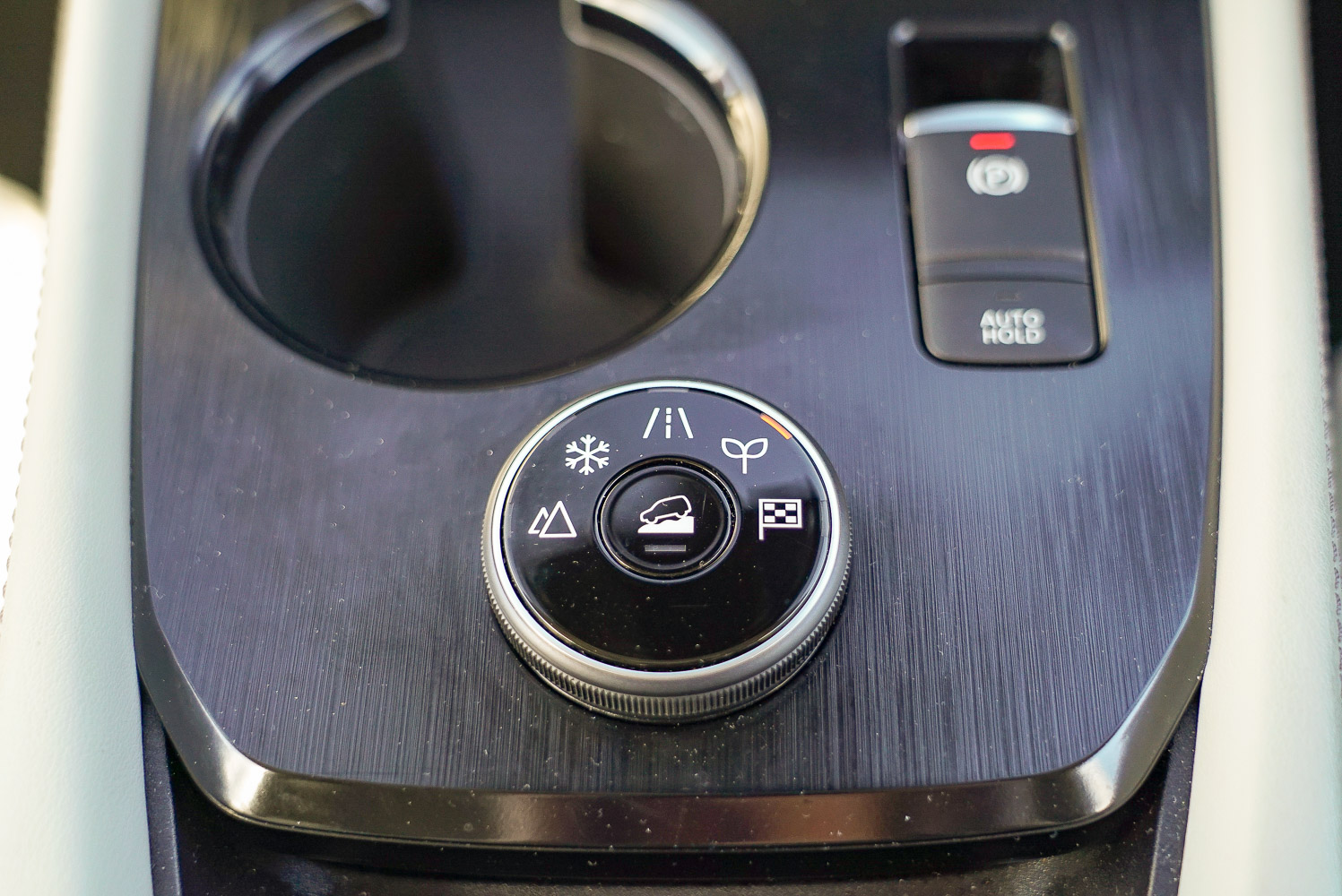 The console between the seats is also home to the drive selector, which is a slightly odd one that slides back and forth, and which is also used by the Qashqai and the Ariya electric SUV. It's one of the few points of the interior that actually feels a little on the cheap side. Behind the cupholders is a rotary switch that allows you to select Eco, Normal or Sport driving modes as well as, in this four-wheel-drive model, the off-road modes.