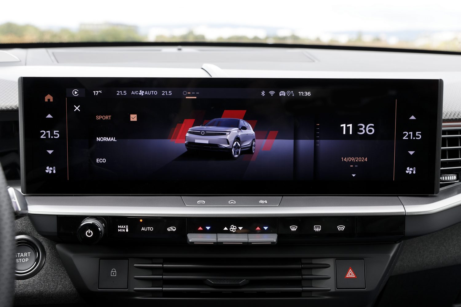 If we have a criticism, though, it’s with that 16-inch touchscreen. Sure, it’s wide, and that measurement looks big in and amongst this particular class of electric SUVs. It also responds pretty sharply to inputs, swipes and prods. But it’s so shallow in height that the proprietary nav in the car is useless if you zoom it in and have it showing either north-up or direction of heading; you can’t see any of the junctions coming up on your route until you’re almost on them. Put it into perspective mode and things are better, but this is an object lesson in how you demonstrate to people that navigation screens should be at least square, if not taller than they are wide. The Opel’s display is oriented all wrong.