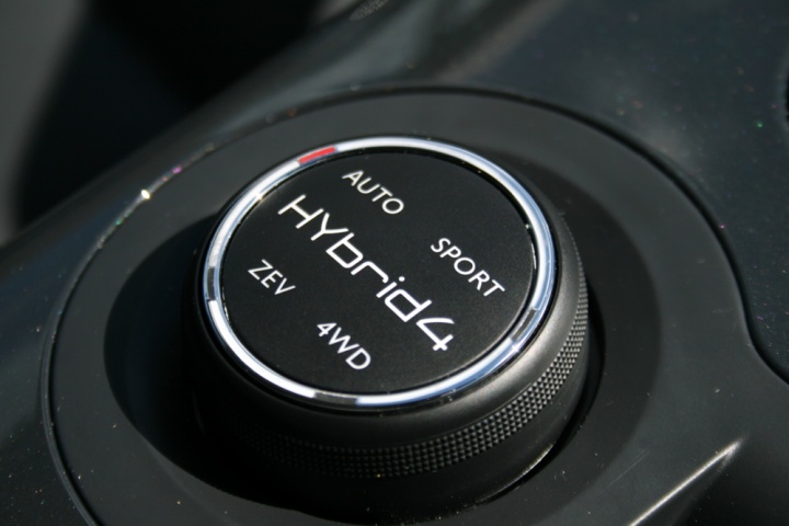 Peugeot is proud of the fact that the HYbrid4 is the world's first diesel-electric hybrid car on the market - and it is undeniably a clever concept. A 2.0-litre HDi diesel engine sits under the bonnet, producing just over 160hp. It drives the front wheels via PSA's six-speed EGC (Electronic Gearbox Control), which has no clutch pedal. An electric motor drives the rear wheels when required, adding nearly 40hp to the equation. The hybrid system can choose any combination of electric motor and engine power depending on the situation and the mode selected. The driver chooses between Auto, Sport, ZEV and 4WD.