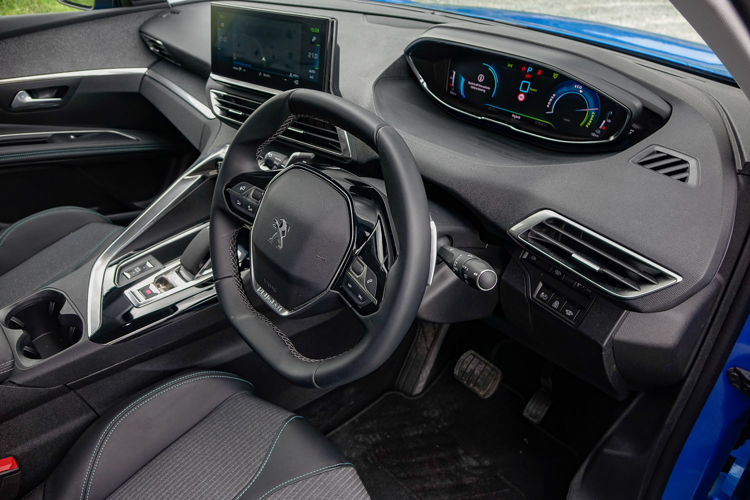 Nobody buys a family-friendly compact SUV expecting engaging handling, and adding a heavy plug-in hybrid drivetrain doesn't do the 3008 any favours, either. The car's small steering wheel gives the impression that the 3008 is going to be sporty, but it's only fitted to help you see the dials. While acceleration is impressive when both the electric motor and petrol engine are working together, most of the time the 3008 is refined and quiet.