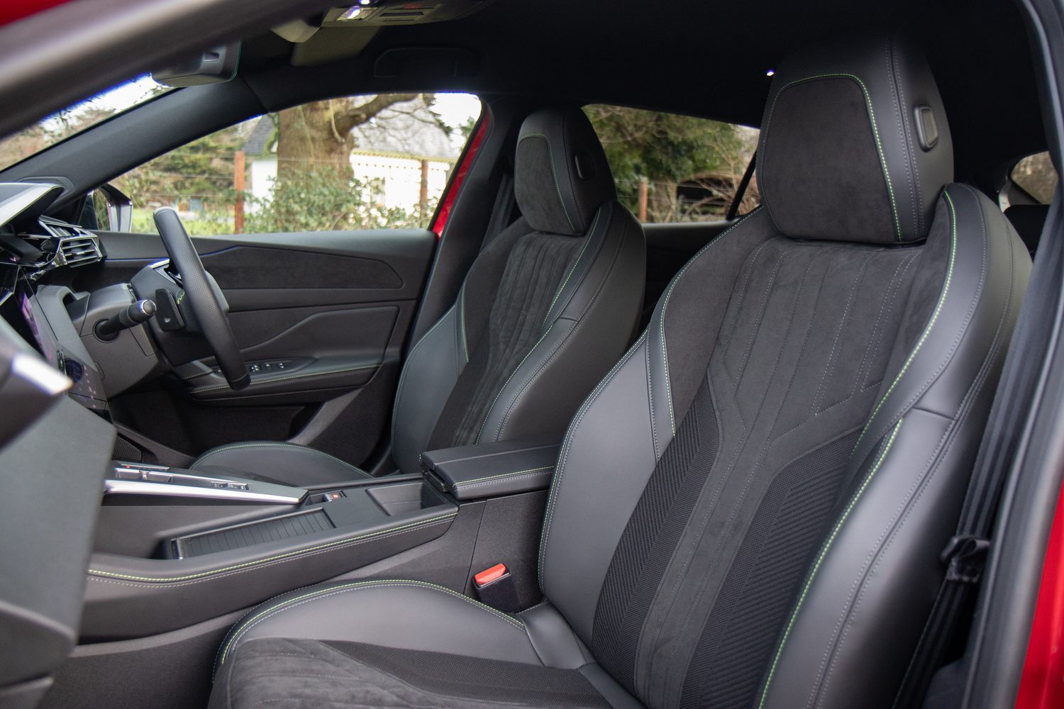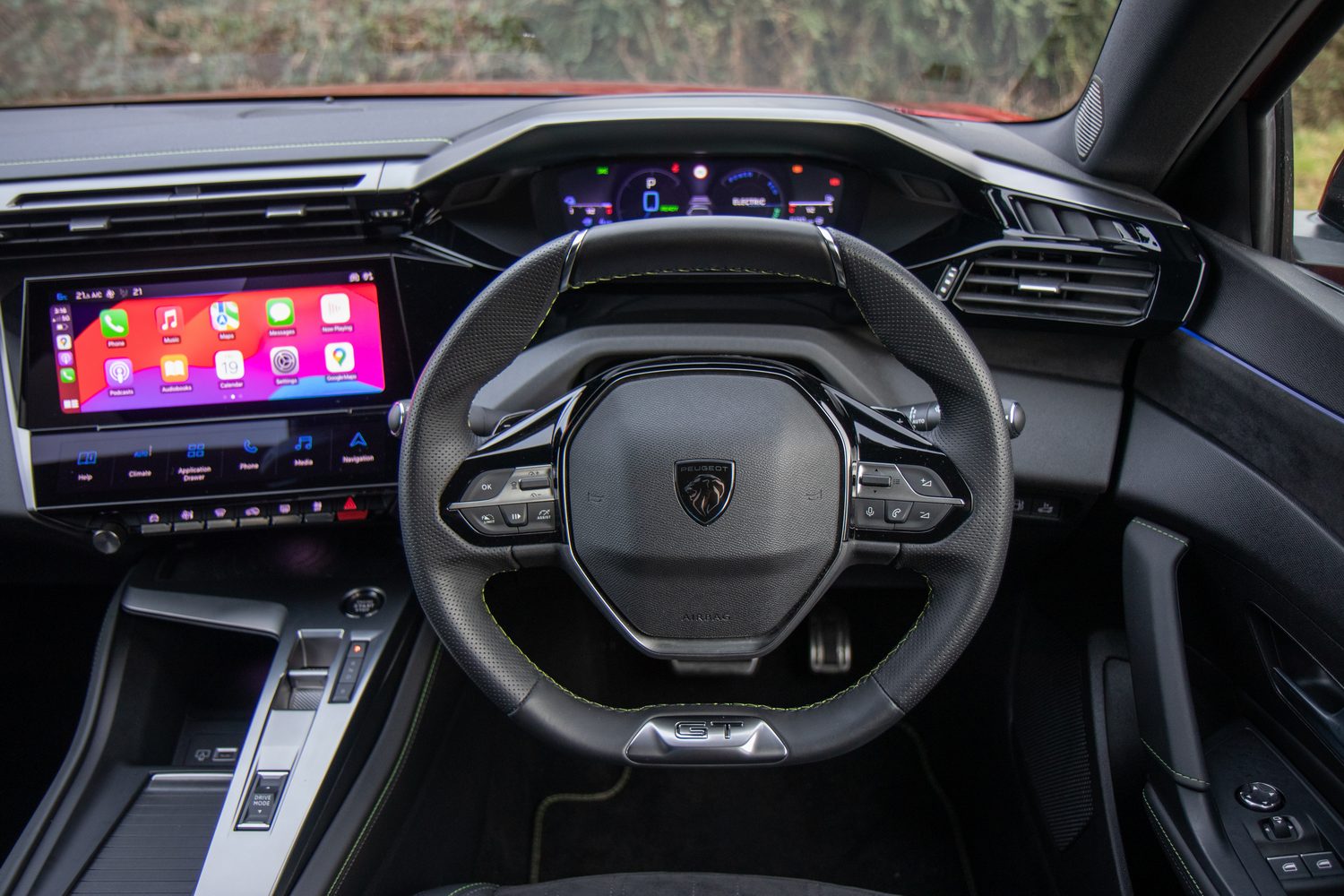 In the rest of the cabin there are a lot of shapes and sudden, slashing lines going on, and on this GT model there's contrast stitching in Peugeot Sport's traditional lime green colour so the whole thing coalesces together pleasantly, and the quality of assembly and materials is exceptionally good.