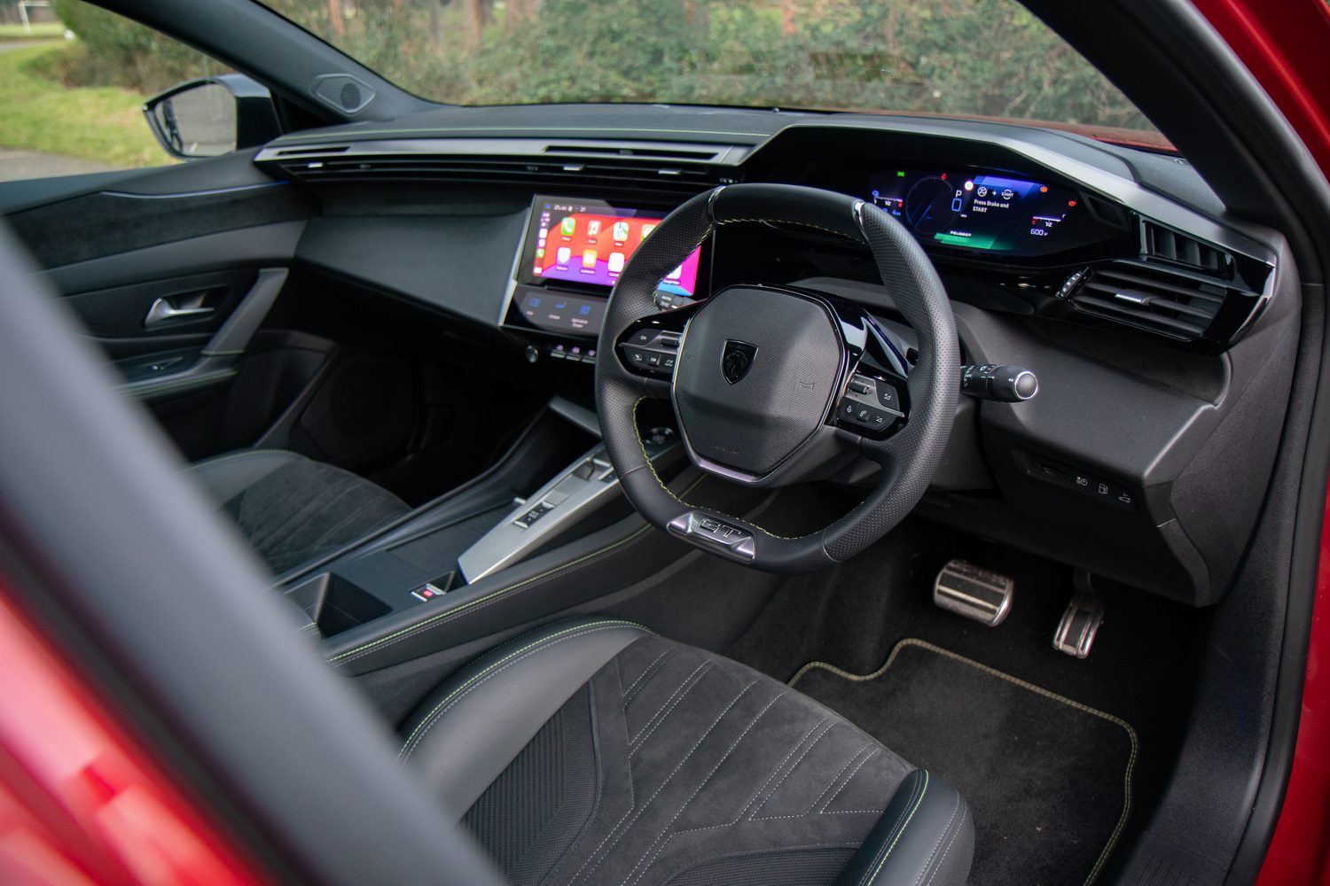 Find some corners, and the 408 feels initially very enthusiastic. That's because the tiny diameter of the steering wheel imparts some fast early movement to the steering, making the nose dart in towards the apex of a corner with more vim than you might expect. It's a bit of a paper tiger, though, as once you're past that initial bite point, you soon realise that the 408 is safely set up like any other medium-sized family crossover, which is no harm. The 408 feels pleasantly fluid on a twisty road, and enjoyable, but its slightly firm ride quality isn't as relaxing on a long journey as that of the Citroen C5 X, which shares all of the 408's underpinnings, save its suspension.