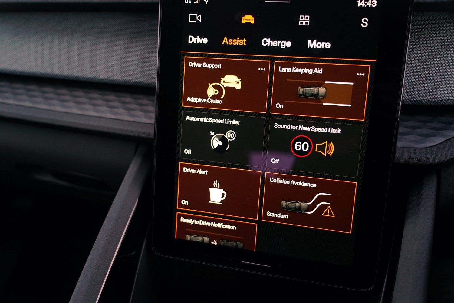Polestar includes almost the full Advanced Driver Assistance Systems (ADAS) suite across the range, with the exception of the items that are part of the Pilot pack, including Pilot Assist (half a step on from adaptive cruise control), Driver awareness, Emergency Stop Assist, Blind Spot Information System with steer assist, Cross Traffic Alert with brake support, automatically dimming exterior mirrors and a 360-degree camera system.