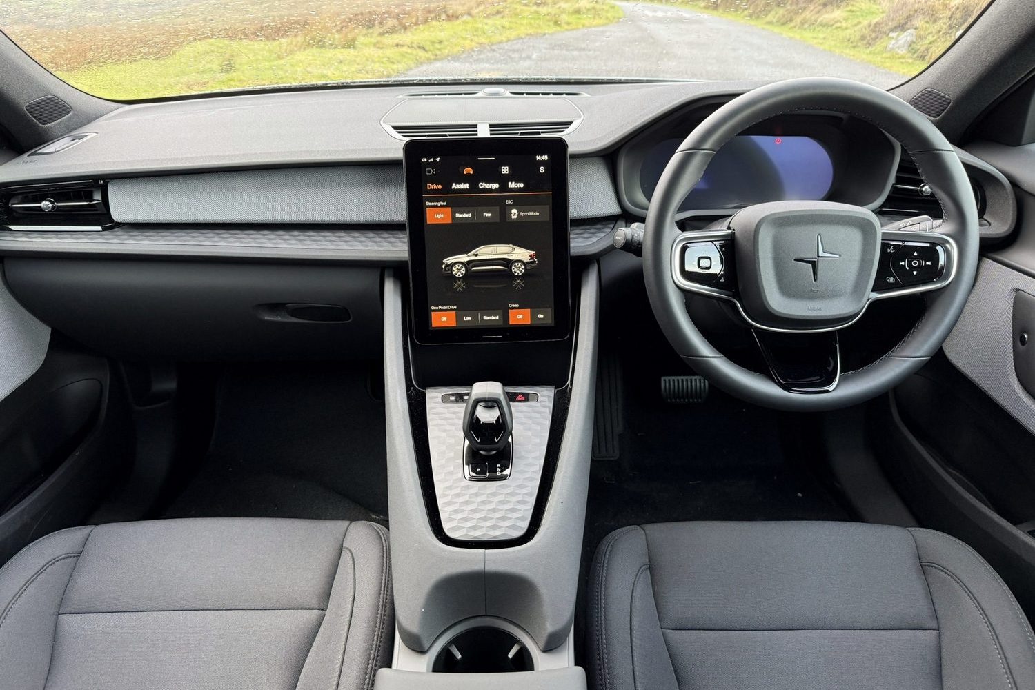 If budget allows, it's well worth upgrading to the Plus model, as it brings a few nice touches to the cabin, including the lovely glass roof with the Polestar logo projected onto its surface, subtle ambient lighting and more.