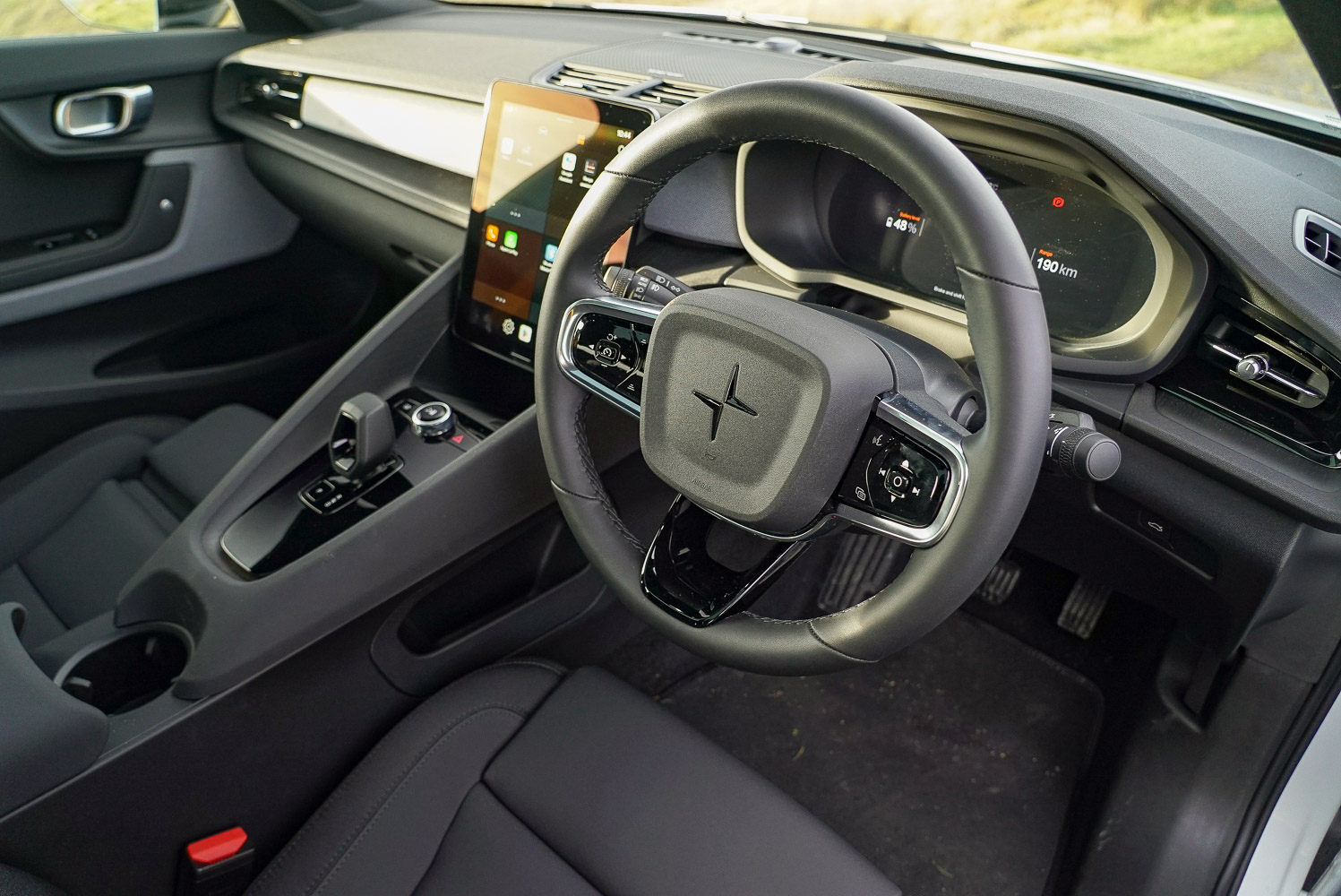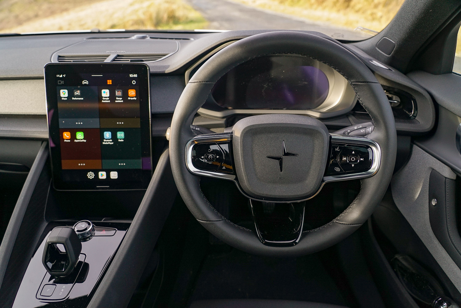 How long that distance is will of course depend on weather conditions. Polestar quotes a range of 462km from a full charge, although the freezing conditions of our test drive - plus the car's sporty character - meant we didn't get near that figure. We did achieve efficiency of 27kWh/100km over about 500km of driving, though, and a range of about 400km from a full charge is reasonable when compared with the official maximum.