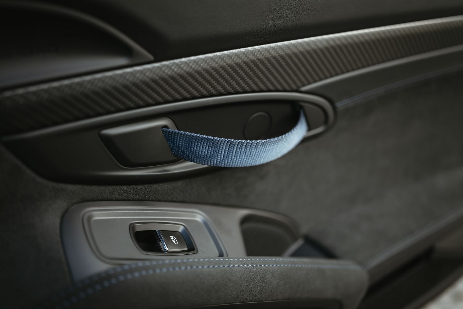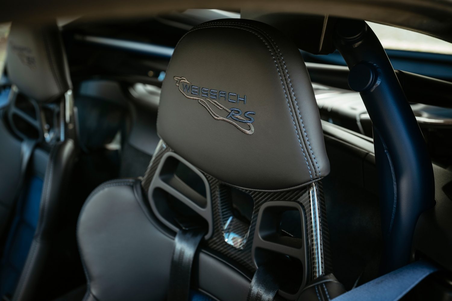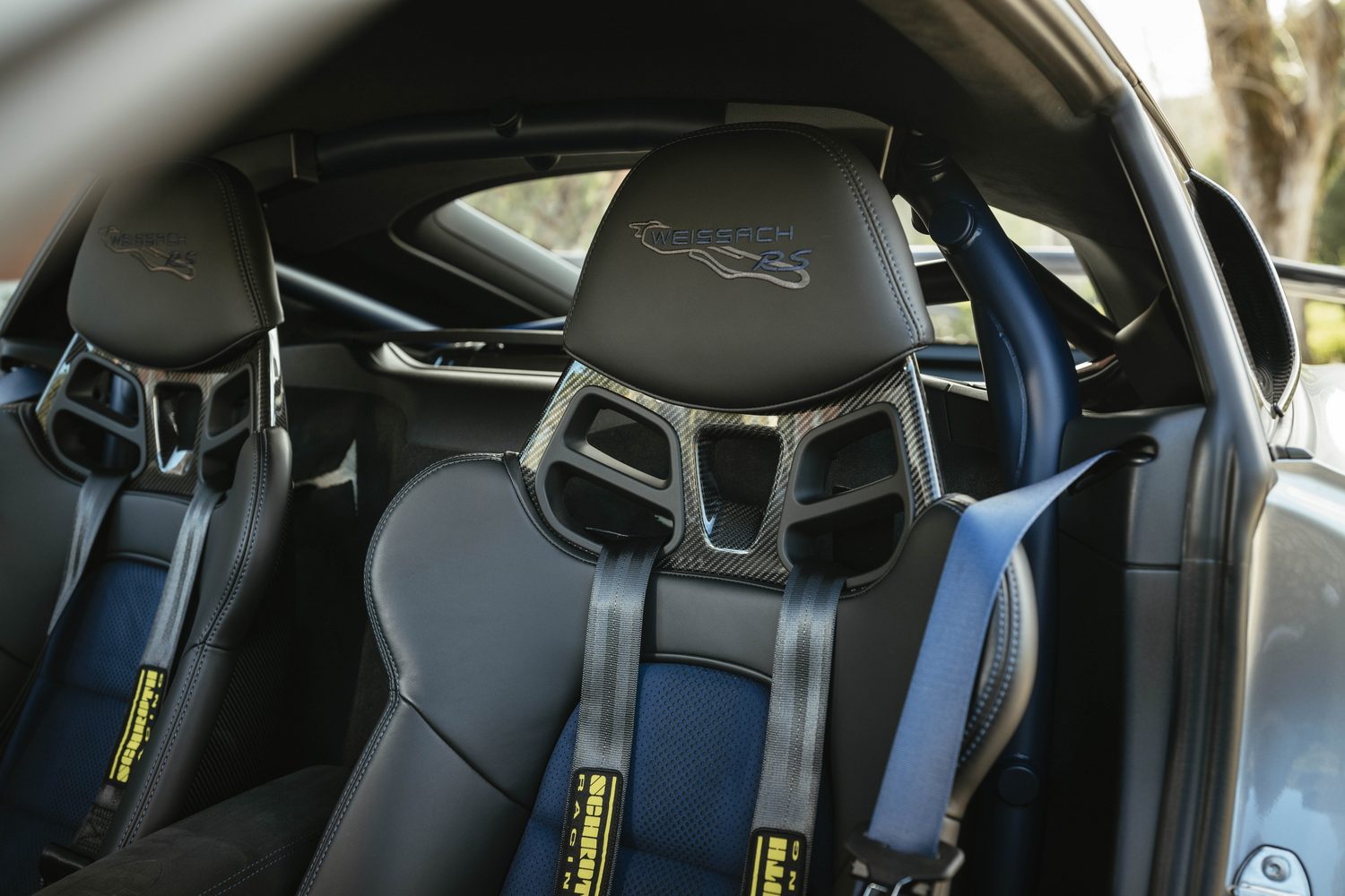 To that mix, the Weissach package adds even more Race-Tex trim and Weissach embroidery on the head restraints, as well as six-point racing harnesses for track use. These are fitted alongside conventional three-point seatbelts, allowing you to leave the restrictive harness unfastened when driving on the road.