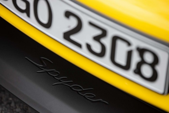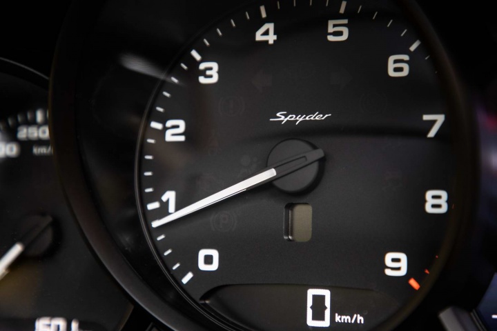 Ah, speaking of which, the six-speed manual gearbox (apparently a PDK automatic will be offered as an option in time) is both tear-inducingly sublime and excruciatingly frustrating at the same time. Don't get me wrong; the shift action of the lever is just perfect (well it is once you get used to how little you need to move it), while the pedal spacing and weighting are ideal for heel-and-toe changes. However, it's very high-geared, so this car will do an indicated 135km/h in second gear. The problem? That robs you of the pleasure of changing gear regularly on the public road when there's just no need to. And you will want to. We love the fact that, while the Spyder comes with an automatic throttle-blip function on down-changes, a quick press of a prominent button on the centre console turns the system off so you can try and do it yourself.