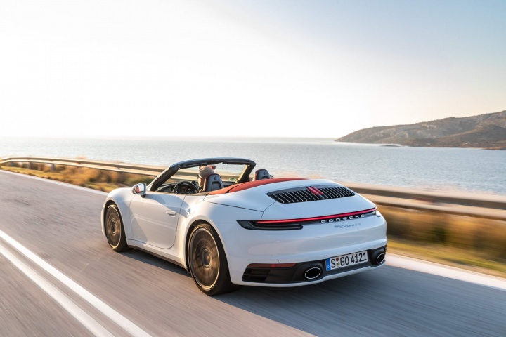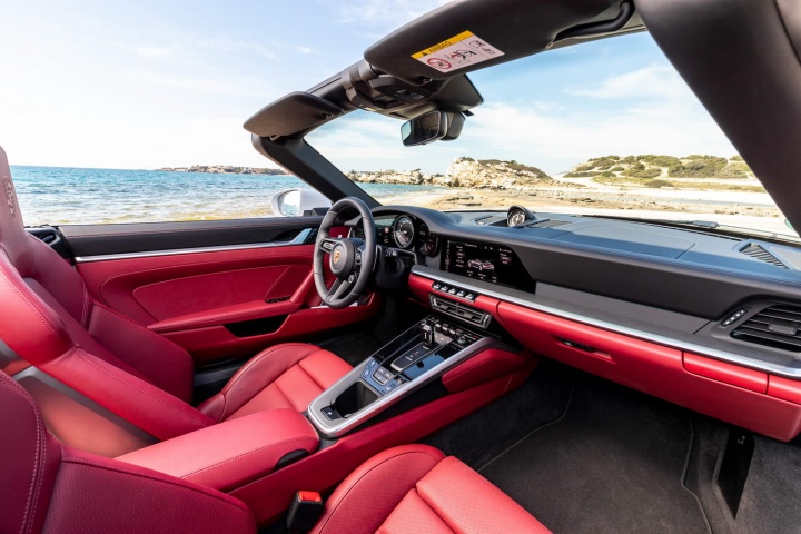 Yet, with 420hp, it couldn't hope to match the 992 Cabriolet. Even as the 'X50'-equipped performance motor, with power ramped up to 450hp, it could 'only' run 0-100km/h in 3.9 seconds and a top speed of 304km/h, which are the slowest stats the new open-top 911s can record. There are two drivetrain options in the range right now, the rear-wheel-drive Carrera S Cabriolet and then the Porsche Traction Management-equipped (PTM) all-wheel-drive Carrera 4S Cabriolet. Despite the AWD 911 Cabriolet being 50kg heavier than its two-wheel-drive sibling, it uses its additional traction advantages to record a marginally faster 0-100km/h time of 3.8 seconds (3.9 seconds for the Carrera S). However, equip either car with the Sport Chrono package and its attendant Sport Plus mode with launch control, and two-tenths tumbles off these times to 3.6 and 3.7 seconds accordingly. The top speeds of the two Cabriolets are both beyond the 300km/h barrier, the 4S maxing out at 304km/h and the Carrera S going a little further, to 306km/h.