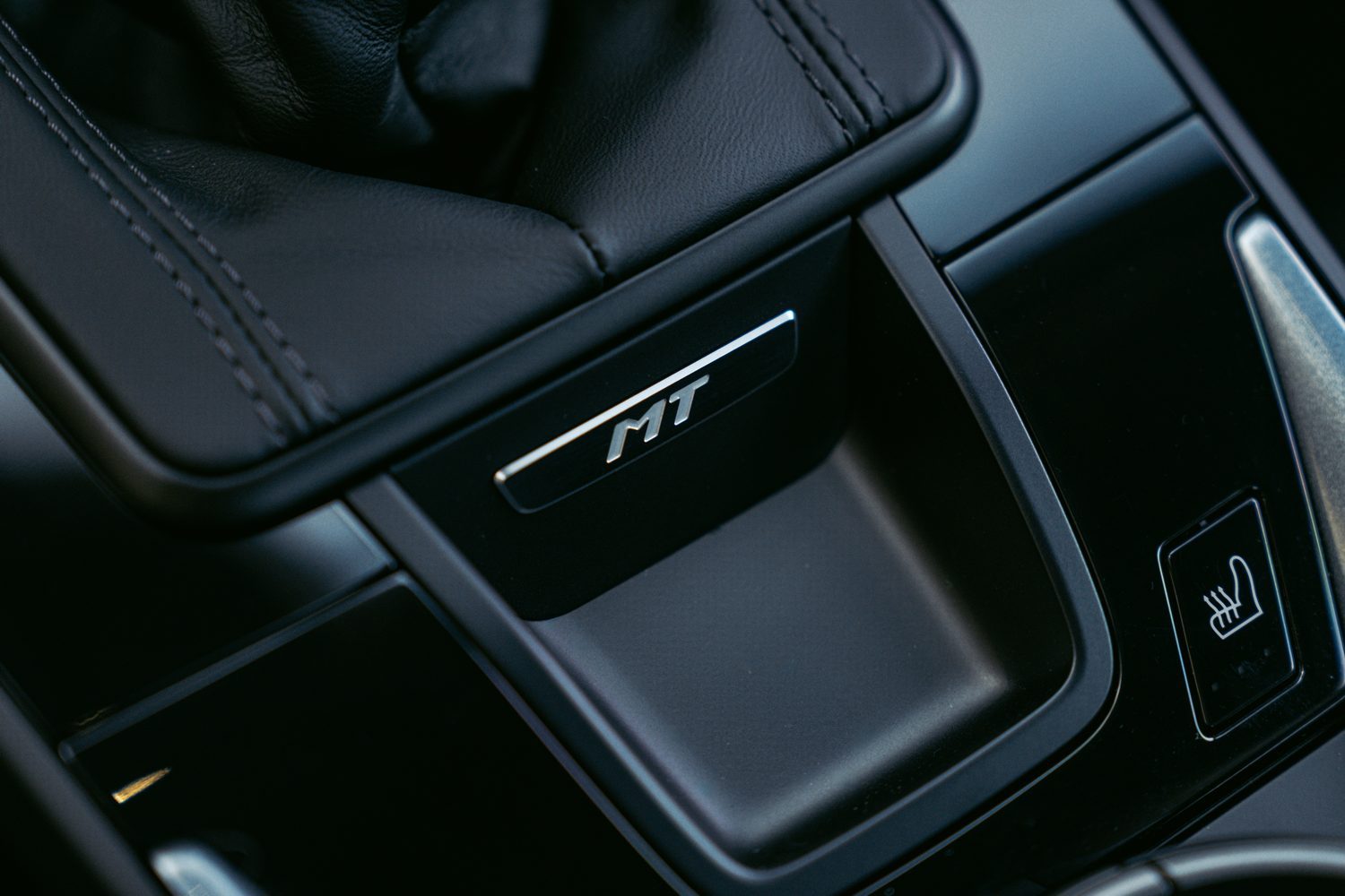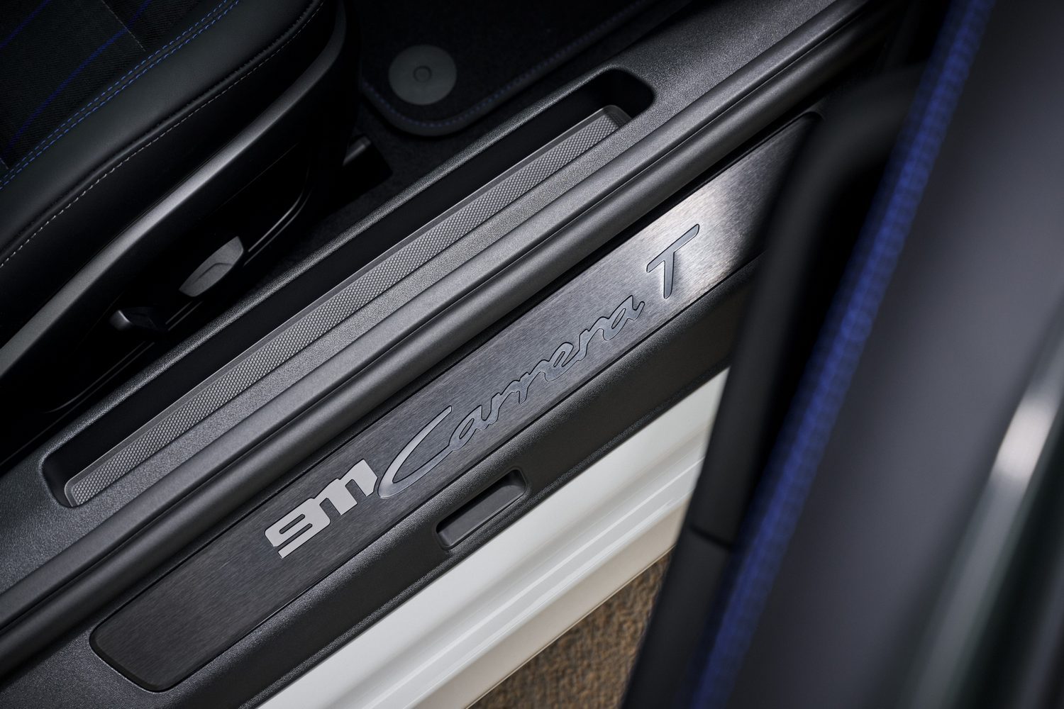 That earlier 'don't forget it's a manual' theme we were talking about on the Carrera T's exterior continues within, where the side-window/puddle-light graphic is once more repeated but in a more discreet fashion on the passenger-side dash, while at the base of the stubby little gear lever - the central attraction of the whole machine - is a small plaque which simply reads 'MT'.