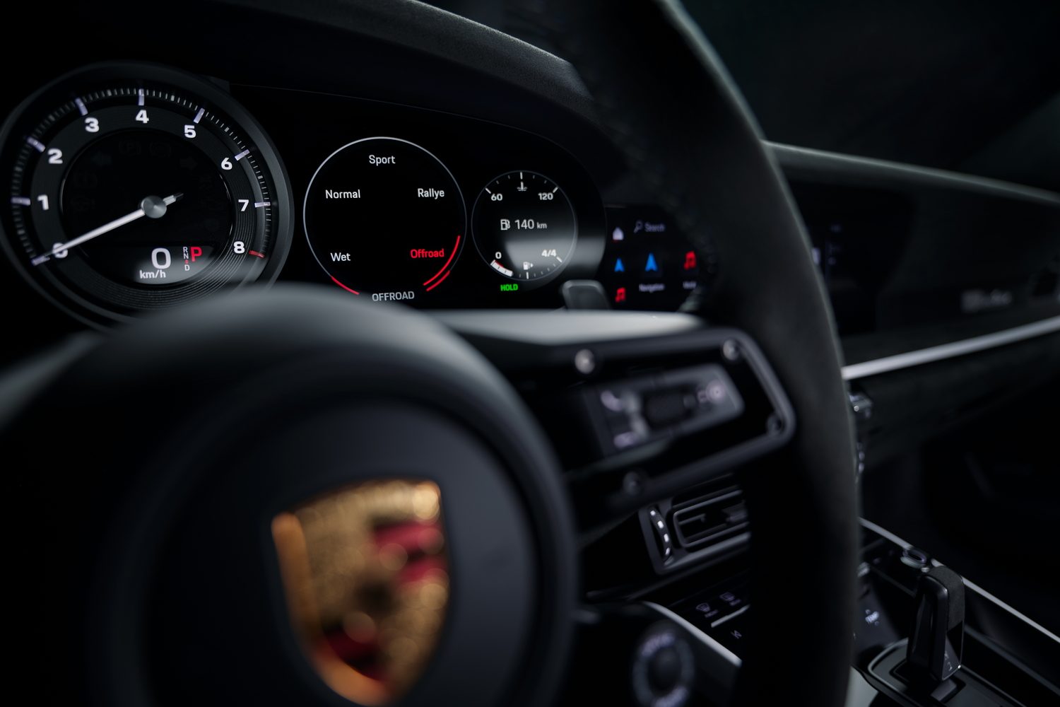 The Dakar uses the same powertrain as the 911 Carrera 4 GTS, which means a twin-turbocharged 3.0-litre flat-six petrol engine mounted in the rear, bolted to an eight-speed, dual-clutch (PDK) gearbox. Power is divvied up between all four wheels via a locking centre differential and electronically controlled rear differential on the rear axle as well. Peak power is 480hp, backed up by a strong 570Nm of torque on tap all the way from 2,300-5,000rpm. Competitive Top Trumps players won't be impressed by its 3.4-second 0-100km/h time or its 240km/h top speed in comparison to other 911s, but it's no slouch in the grand scheme of things and anyway, this car has other talents.